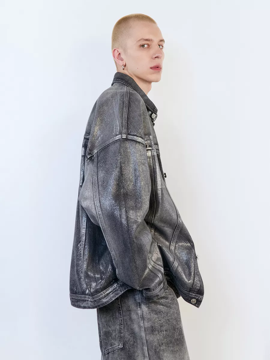 Куртка-рубашка джинсовая с блестящим напылением.... [...]