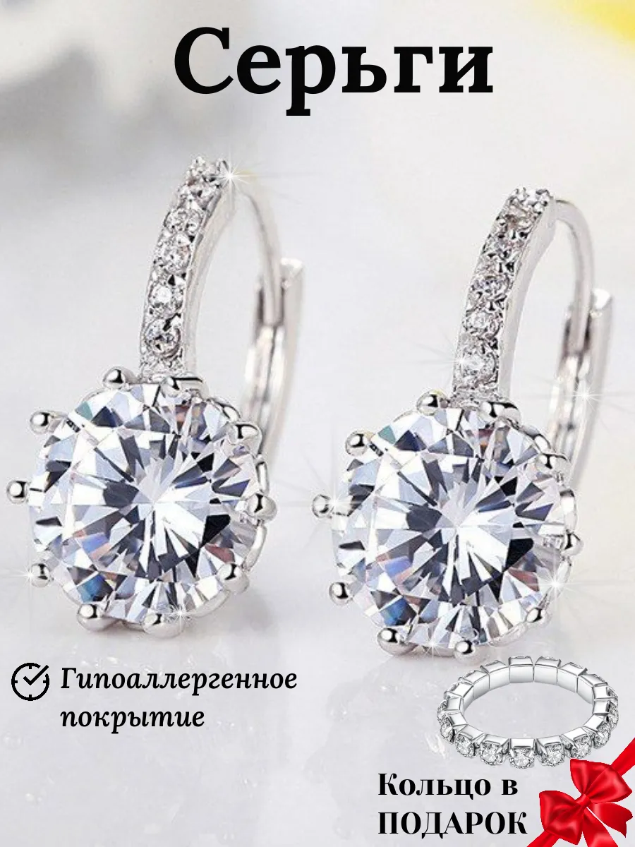 Серебряные сережки бижутерия с сияющем цирконом -... [...]