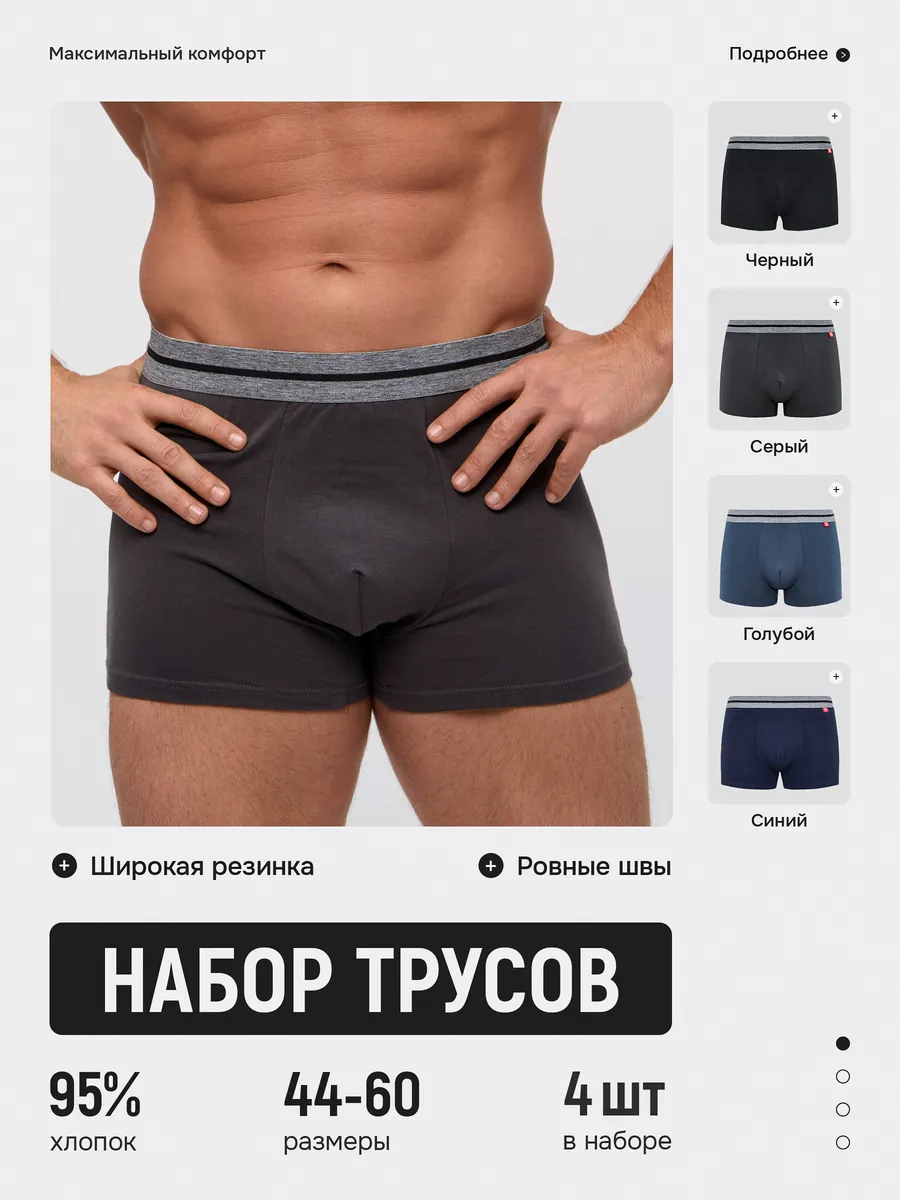 Мужские трусы из разных цветов в комплекте 4 штуки.... [...]