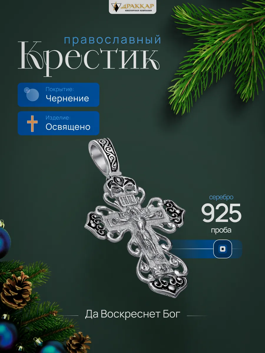 Православный крестик на шею женский выполнен из серебра 925 пробы с оксидированием чернением. ОСВЕЩАНО. Этот изысканный кулон, являющийся украшением, сочетает в себе глубину веры и изящество исполнения. Размер включая подвесное ушко 35х17мм, внутренний размер ушка 6х3,5мм. [...]