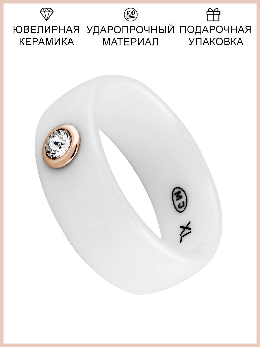 Стильное керамическое кольцо из гладкой керамики украшено кристаллом Swarovski огранки бриллиант в золотистом обрамлении. Сдержанный минимализм керамического кольца с вставкой из камня Сваровски - идеальный выбор на каждый день. Ширина колечка из ударопрочной керамики [...]
