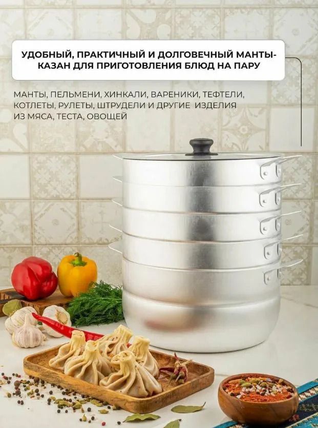 Мантоварка «Калитва» с крышкой, 3-уровневая, 6 лМантоварка «Калитва» изготовлена из алюминия и предназначена для варки мантов, блюд традиционной восточной кухни, а также приготовления блюд детского и диетического питания: рыбных, мясных, овощных и других блюд на пару. [...]