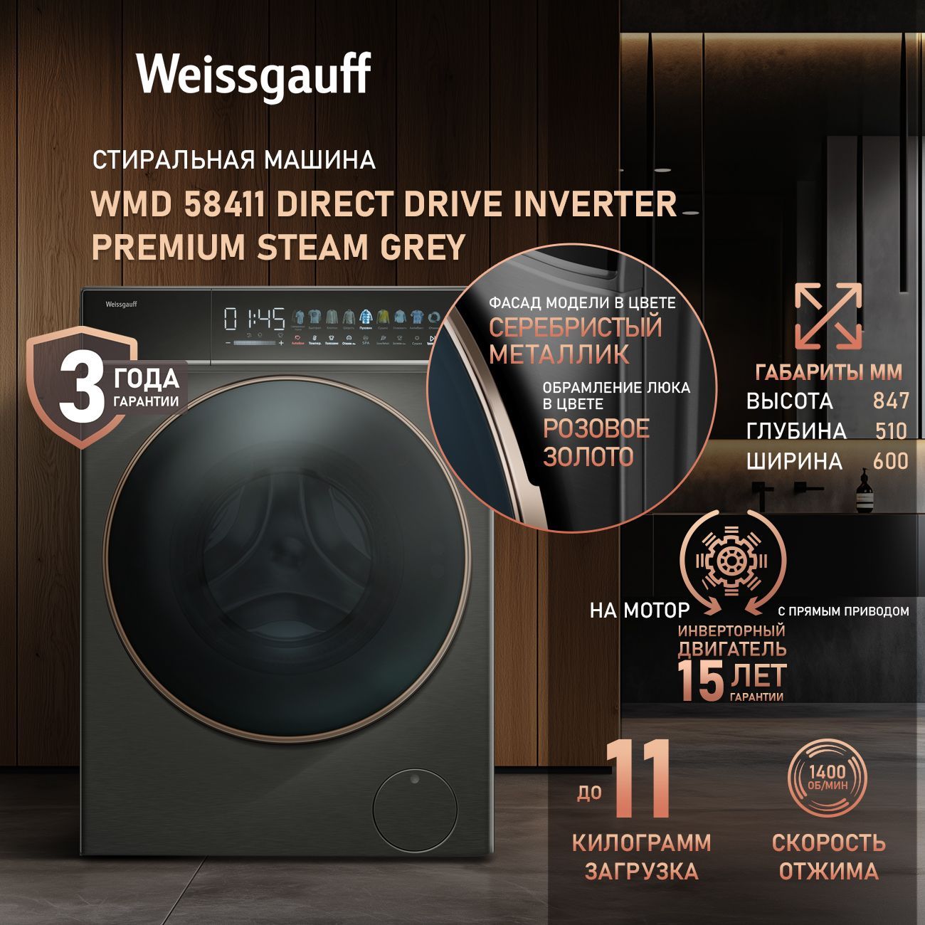 Отдельностоящая стиральная машина автомат Weissgauff с сушкой выполнена в цвете "серебристый металлик" и оснащена прямым приводом, инверторным двигателем и функцией пара. Данная стиралка имеет показатели загрузки до 11 кг белья при стирке и до 6 кг белья при сушке, скорость [...]