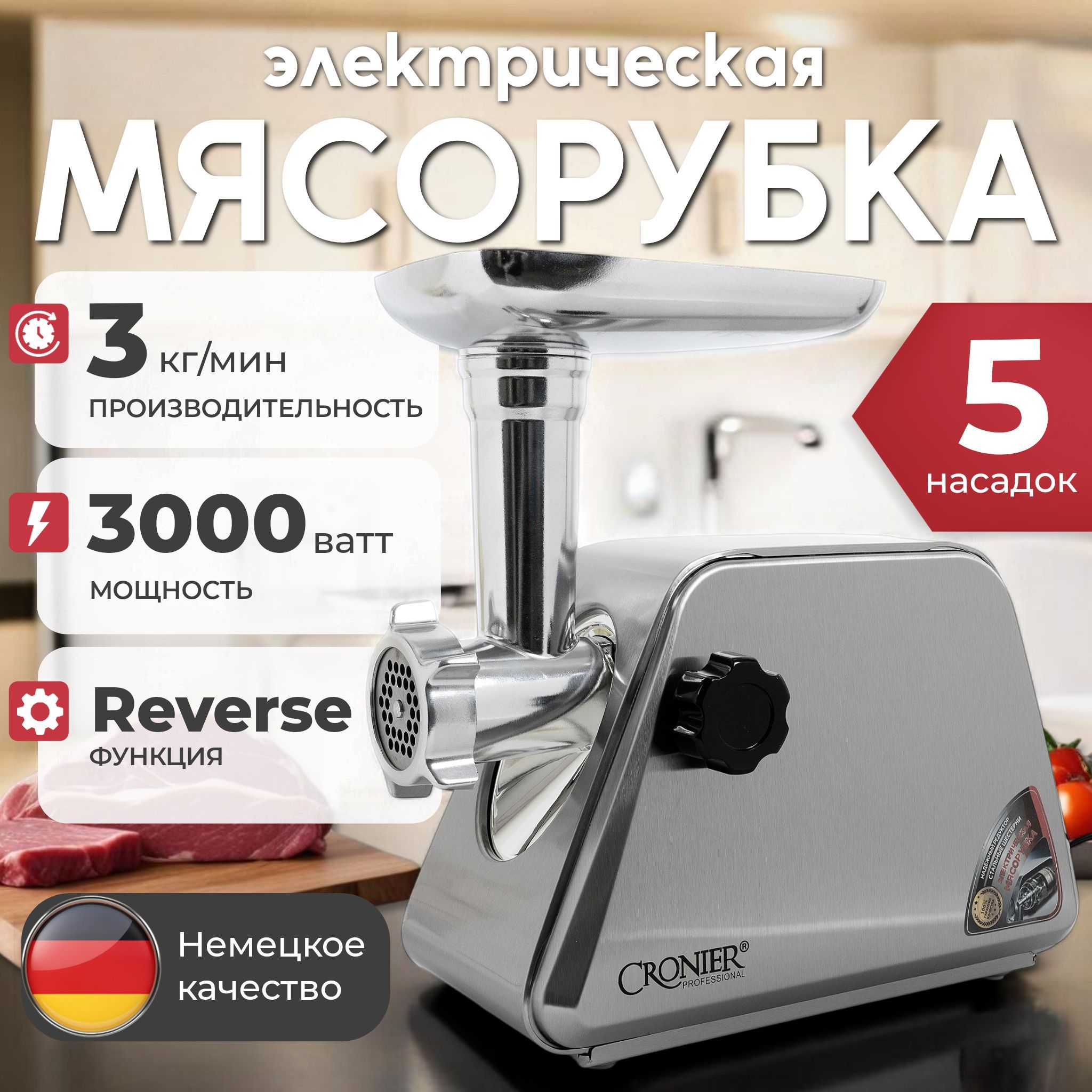 Электрическая мясорубка с 5 насадками и функцией реверса станет незаменимым помощником на вашей кухне. Этот прибор позволит вам легко и быстро перерабатывать мясо для своих любимых блюд. Мясорубка электрическая подходит для приготовления разнообразных мясных изделий . [...]