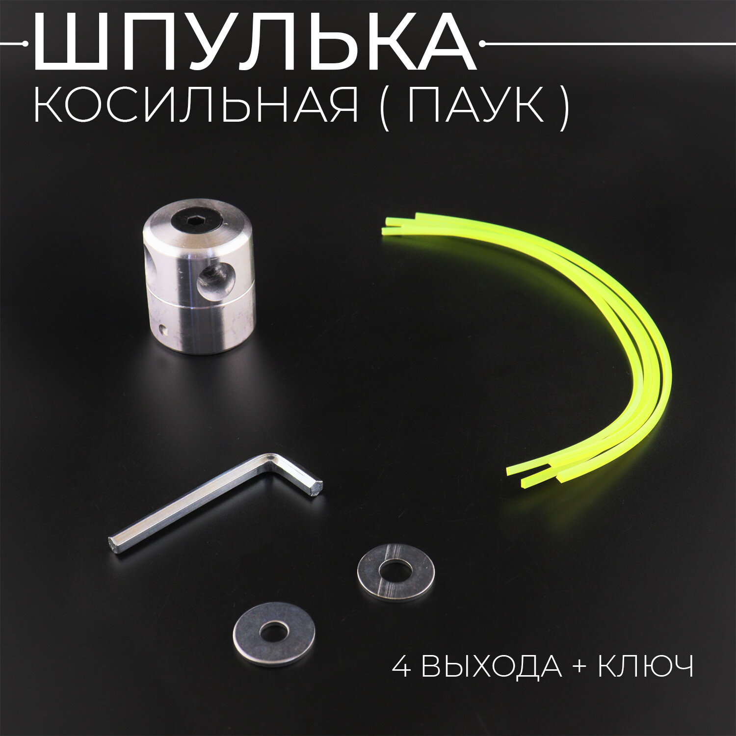 Катушка - головка для триммера "паук" с леской.<br />Ударопрочный монолитный алюминиевый корпус не имеет резьбы. Она устанавливается используя гайку от триммера (также как монтируются диски).<br />В комплекте переходные шайбы под разные посадочные шпиндели.<br />Подходит для [...]