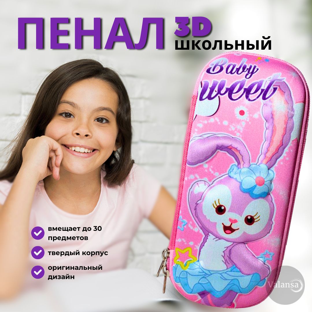Пенал для девочки первоклассницы с объемным 3D рисунком красивый стильный вместительный пенал для школьной канцелярии учениц начальной школы. Имеет одно большое отделение для ручек карандашей и маркеров и большой сетчатый кармашек для других школьных принадлежностей [...]