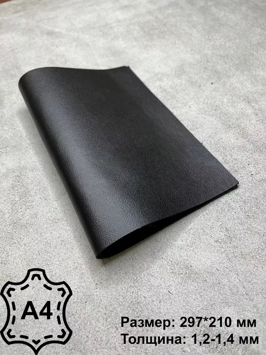 Кожа КРС натуральная формата А3, А4 и А5. Размер кожи галантерейной А3-297 × 420 мм, А4-210 × 297 мм и А5 - 148 х 210 мм. Листы кожи имеют комбинированное дубление (хромово-растительное). Толщина 1,3-1,5 мм и 3,1-3,5. Барабанное крашение. Матовый коричневый, матовый черный и матовый синий [...]