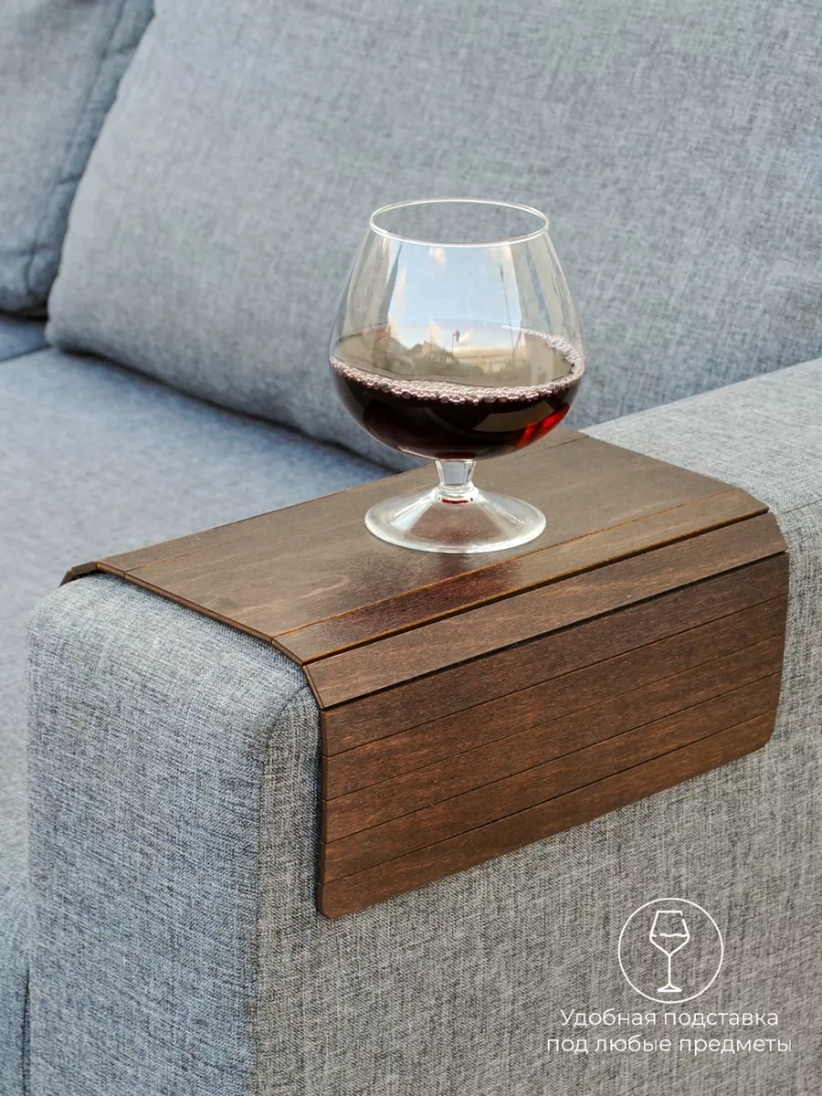 Декоративная подставка на подлокотник дивана деревянная и интерьерная, работает как поднос и мини столик для горячего и под кружку, вина и еды, пива и других напитков - стильное и функциональное дополнение к вашему интерьеру гостиной, изготовлена из натурального [...]