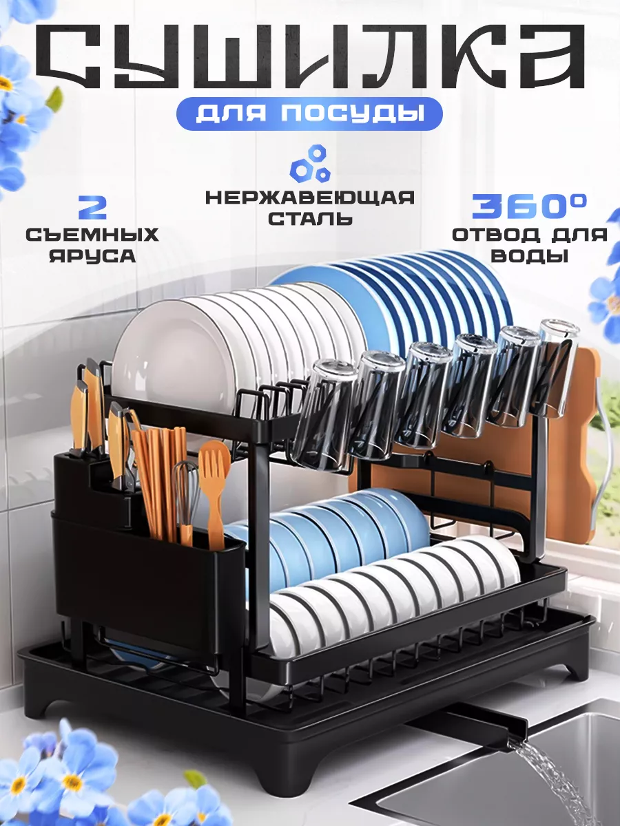 Представляем Вам двухъярусную сушилку для посуды с пластиковым ЧЕРНЫМ поддоном - идеальное решение для быстрой и аккуратной сушки. Настольная сушка для кухни для столовых приборов имеет два уровня, что позволяет разместить большое количество тарелок, чашек и столовых [...]