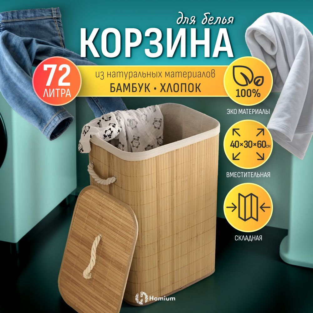 Корзина для хранения белья складная KODALIFE 75 литров. Корзина подходит для грязного белья в ванную, для полотенец, вместительная и большая для игрушек, корзина для детского белья, для хранения разных вещей. [...]