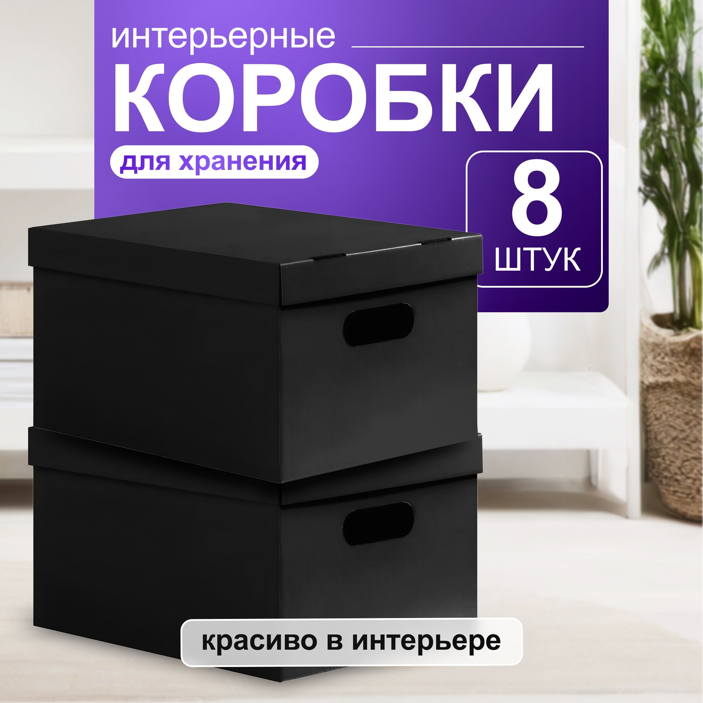 Коробка для хранения - 8 шт., черные, серия "White&Black" Картонные коробки для хранения с крышками помогут удобно организовать пространство и навести порядок в доме.В комплекте - 8 шт. Основание – 33х25 см, высота – 18,5 см. Материал – матовый микрогофрокартон повышенной прочности. [...]