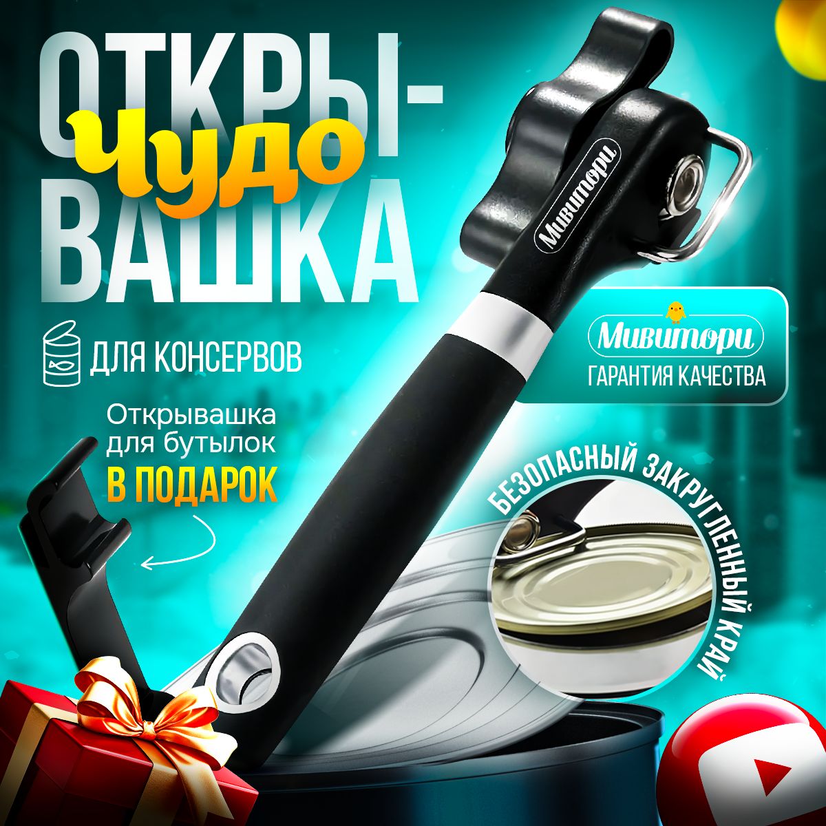 Многофункциональная открывалка для консервов, лезвие из нержавеющей стали. Открывашка для консервов сделана из стали + ABS пластик. Зубчатая режущая головка ножа долговечная и острая, ровно и гладко обрезает края консервных банок. Вращающаяся ручка открывалки для банок [...]
