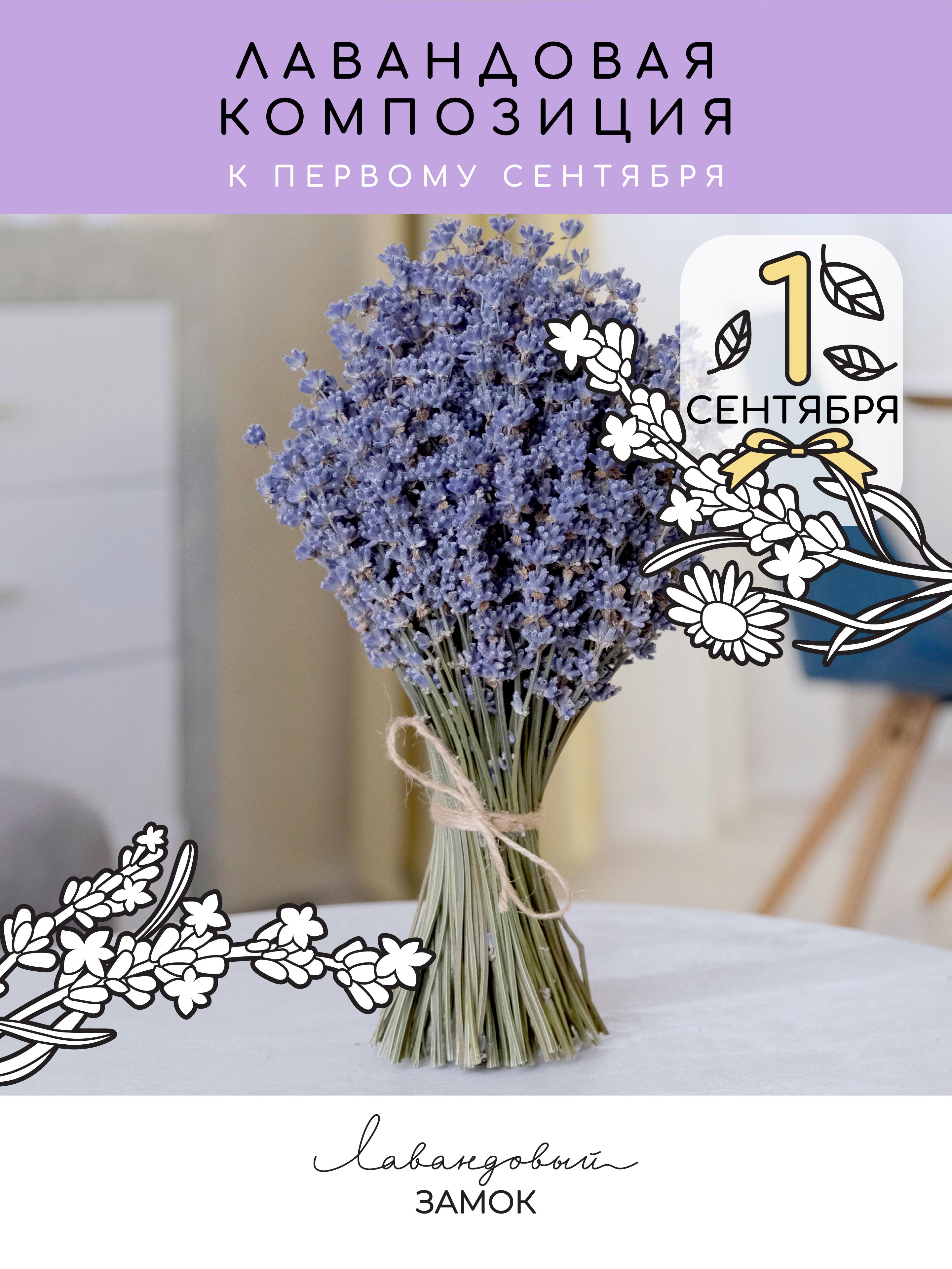 Букет из ароматной, флористической лаванды, самостоятельно стоящий на собственной ножке (ваза не нужна!), перевязанный бечевкой. В букете все цветочки крупные, все цветоносы длинные, аккуратно подрезаны, каждая веточка собрана по спирали, композиция собрана в правильной [...]