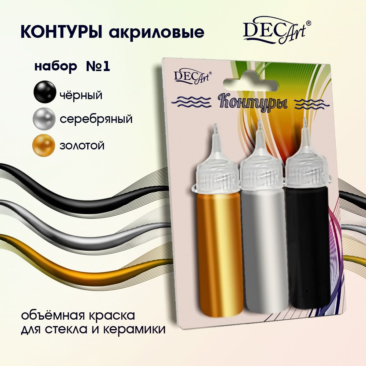 Контуры акриловые универсальные DecArt набор 3 цвета по 20 мл. Набор акриловых красок для создания контуров и рельефного декорирования различных поверхностей: бумаги, дерева, пластика, ткани, кожи, металла и стекла.Акриловые контуры отлично подходят для декорирования [...]