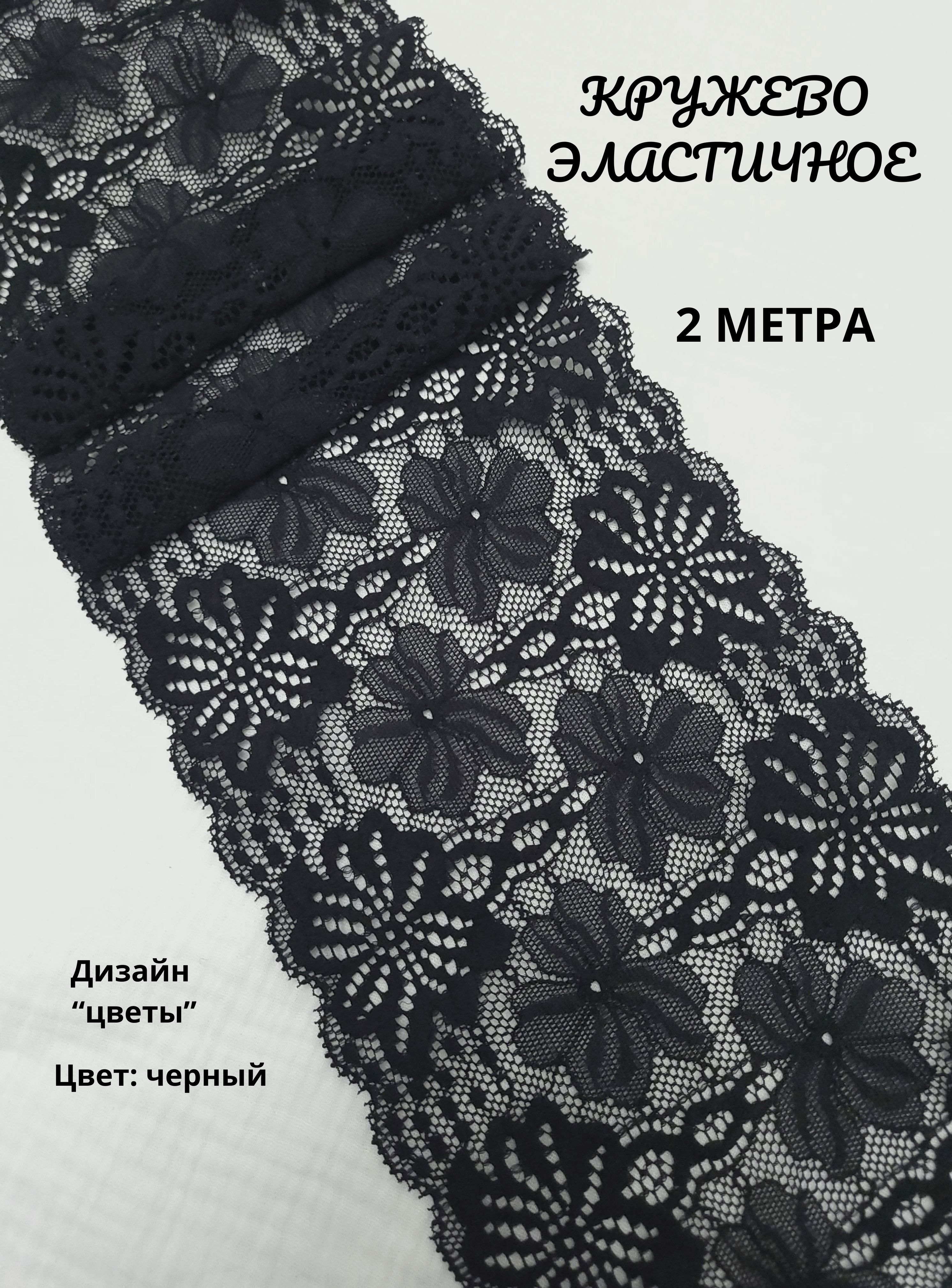 Отрез эластичного кружева длиной 2,0 м шириной 15 см черного цвета.Флористический дизайн с цветочным орнаментом "цветы" представлен также в бордовом и ярко белом цвете. Тянется в обоих направлениях. Очень качественная.Кружево возврату не подлежит (по правилам маркетплейса). [...]
