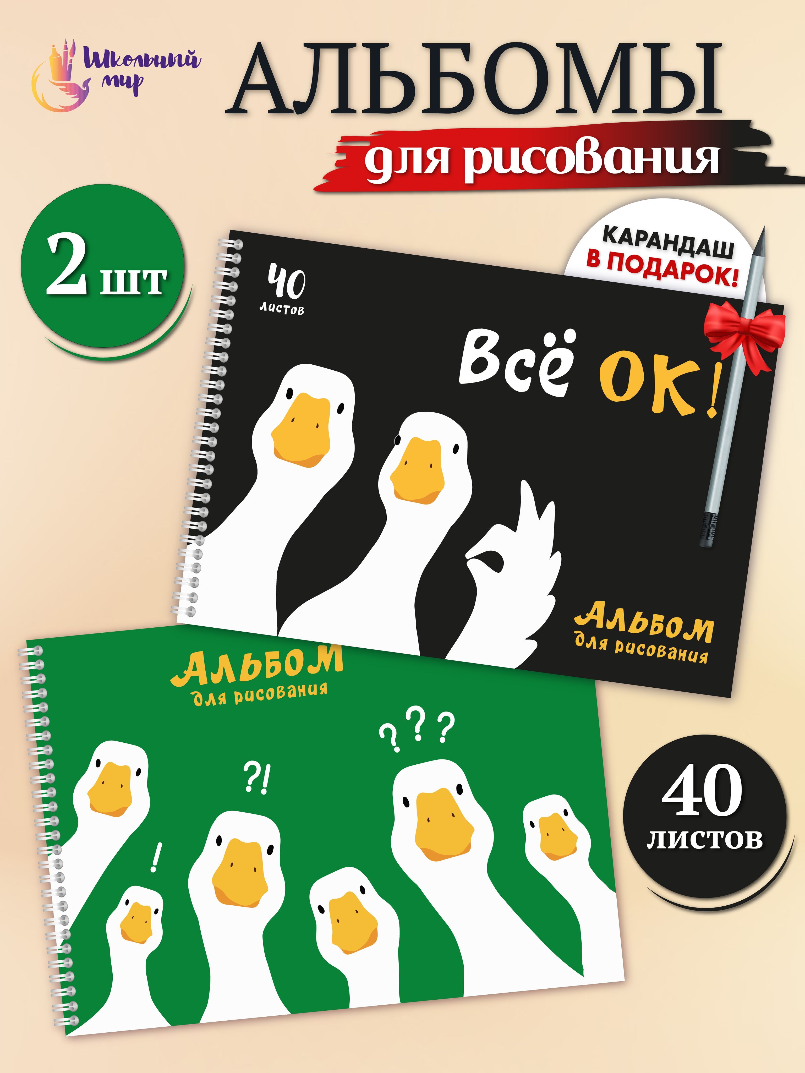 Альбом для рисования детский 40 листов А4 "Гусиная компания" предназначен для девочки и мальчика увлекающихся живописью. Плотная бумага делает краски более яркими. Листы не промокают при рисовании красками акварель и не коробятся при высыхании. Содержит 40 листов [...]