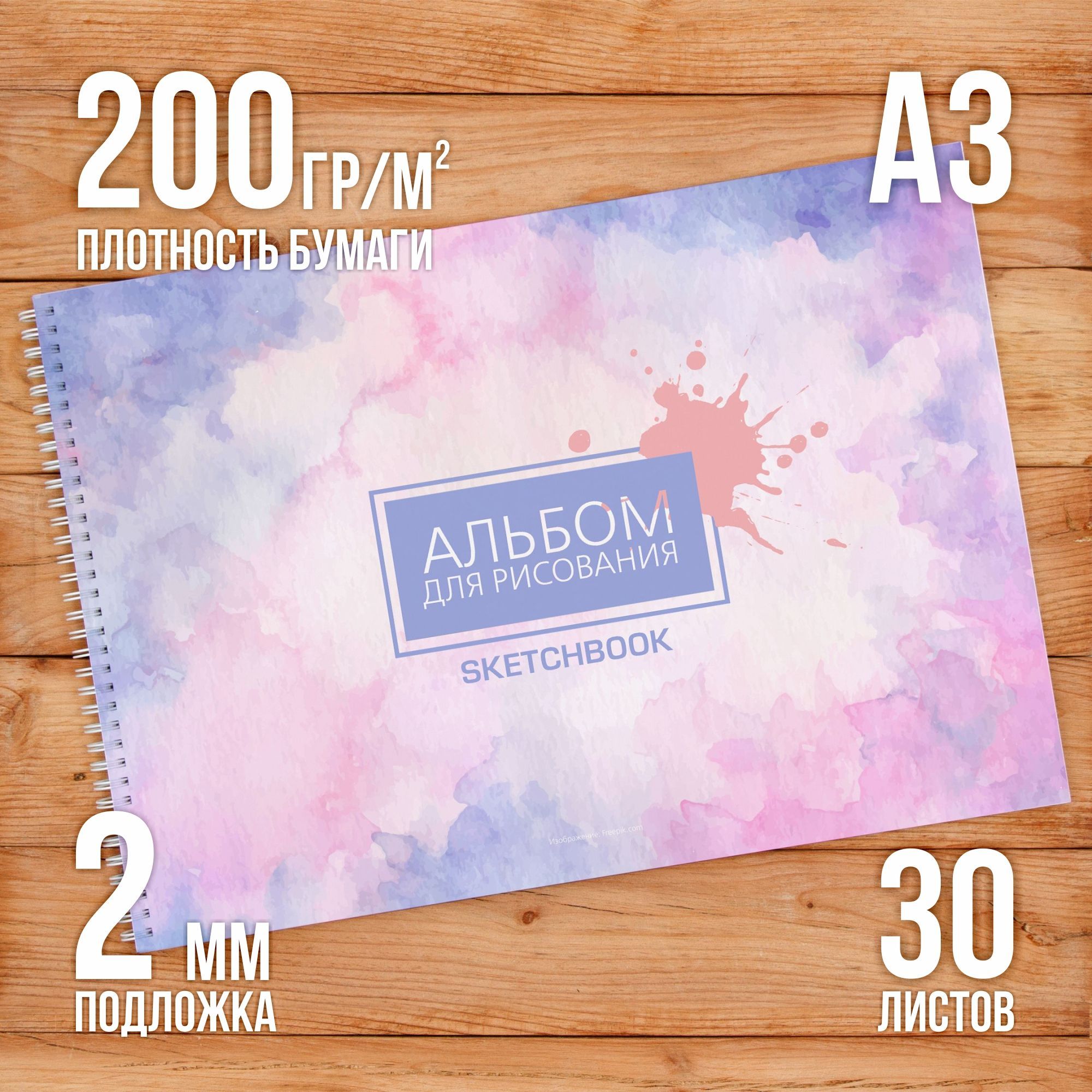 Альбом для рисования и акварели А3 в виде планшета на жесткой подложке (скетчбук).Объем - 30 листов плотностью 200 г/м2. Такая плотность позволяет использовать альбом для рисования акварелью и пастелью, а также для рисования фломастерами для скетчинга.Альбом переплетен на [...]