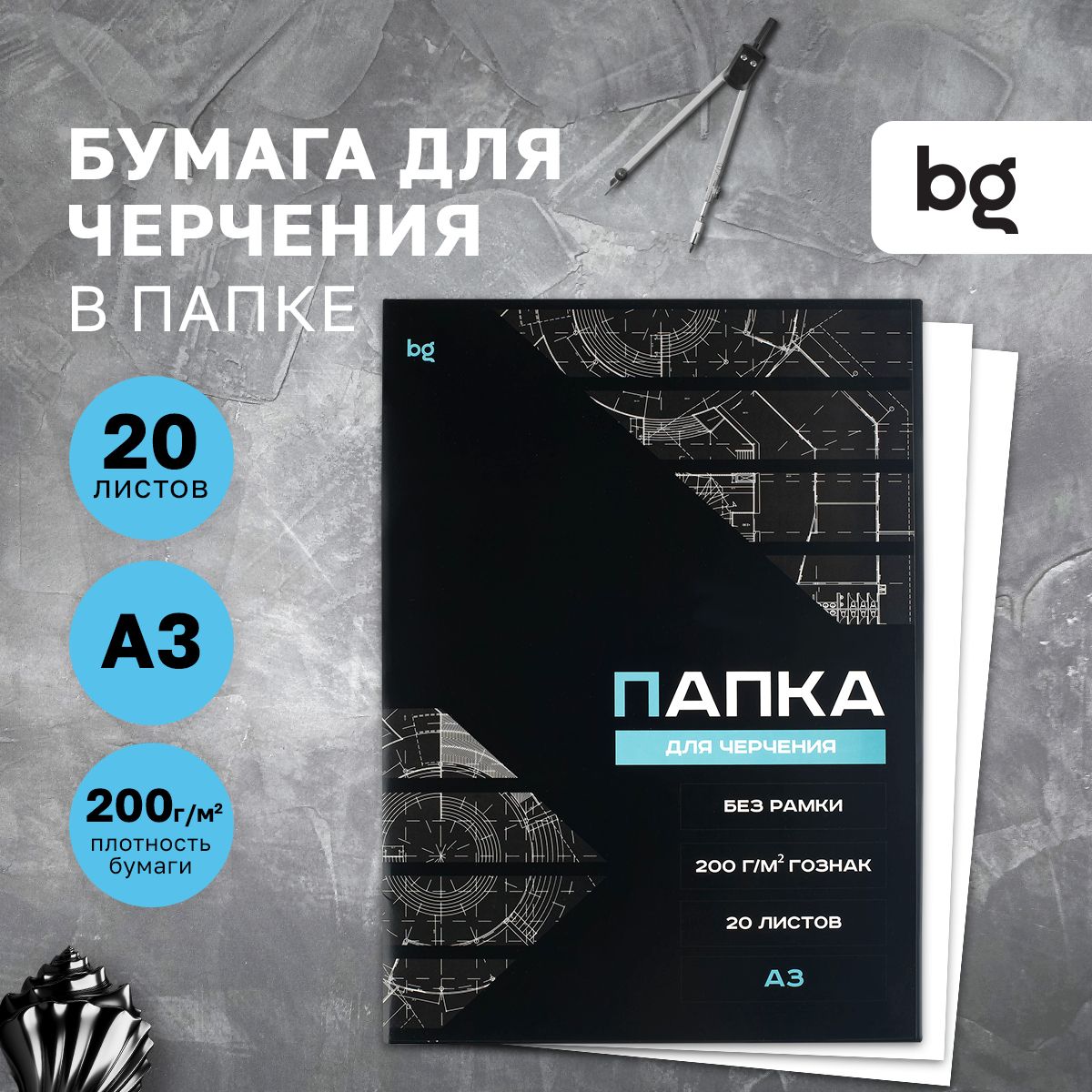 Папка для черчения школьная без рамки BG подходит для выполнения графических работ как чернографитными карандашами, так и тушью. Блок состоит из чертёжной бумаги марки А (ватман, изготовленный на Санкт-Петербургском заводе «Гознак») плотностью 200 г/м² и формата А3 (297*420 мм). [...]