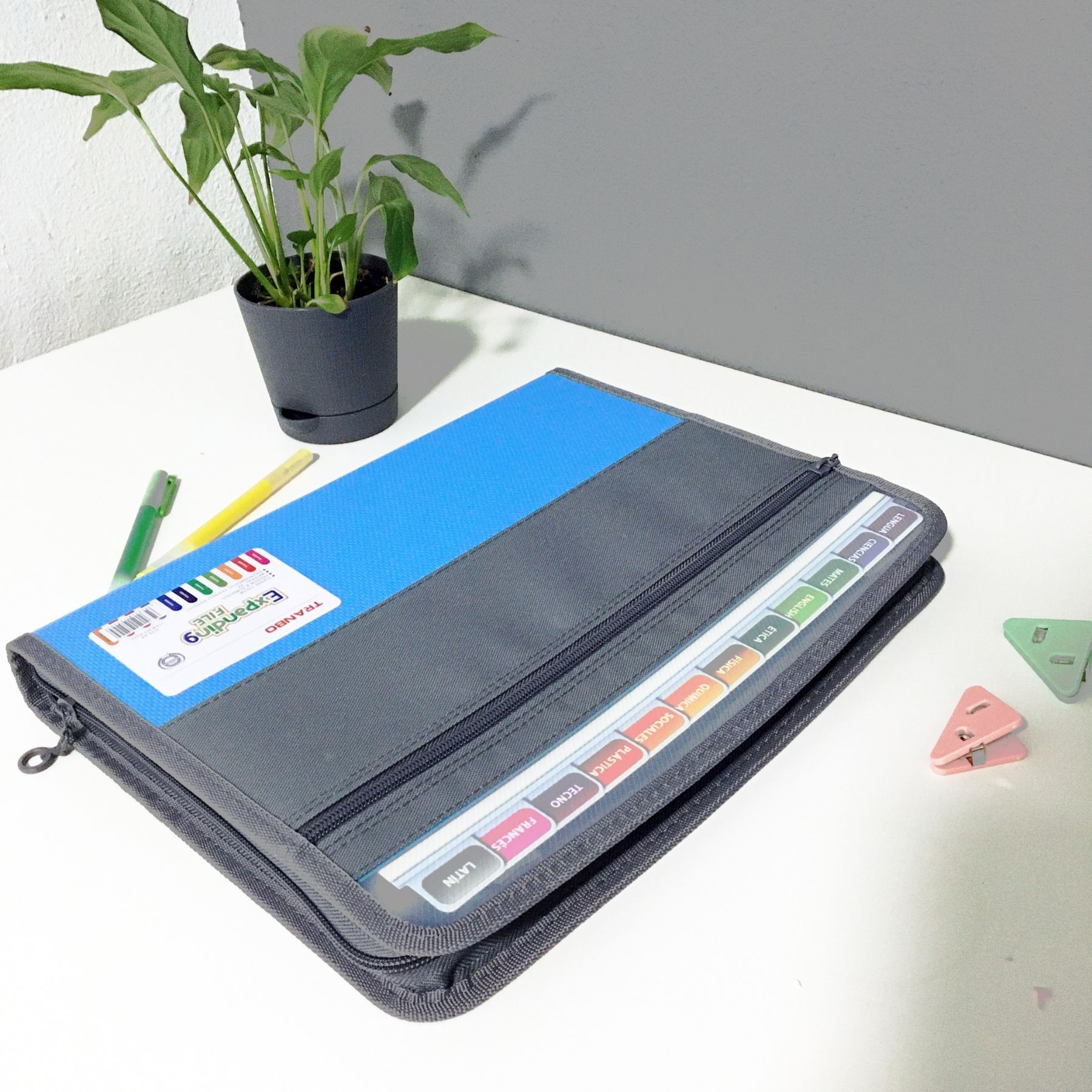 Папка органайзер для документов предназначена для хранения большого количества бумаг формата А4. Размер папки 326*240*20 мм. Она оснащена 12 отделениями, вмещающими до 250 листов. Вкладыш легко расширяется и снабжен цветными бумажными индексами, облегчающими сортировку. [...]