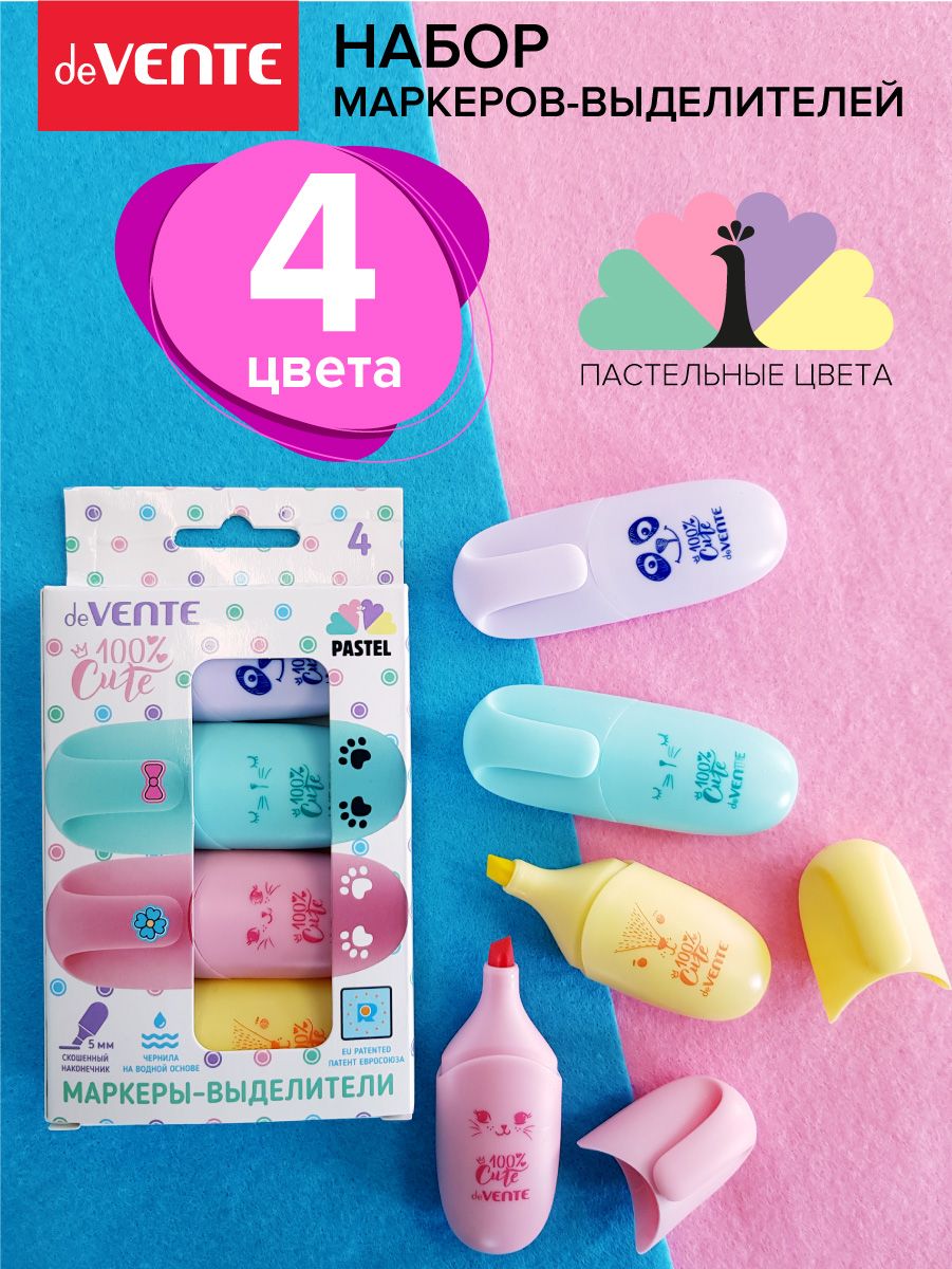 Набор маркеров-выделителей deVENTE серия 100% Cute имеет 4 нежных пастельных эстетичных цвета - желтый, фиолетовый, розовый, мятный. Такие маркеры подойдут тем, кто устал от ярких кислотных цветов в документах. К тому же приглушенные цвета снижают нагрузку с глаз во время [...]