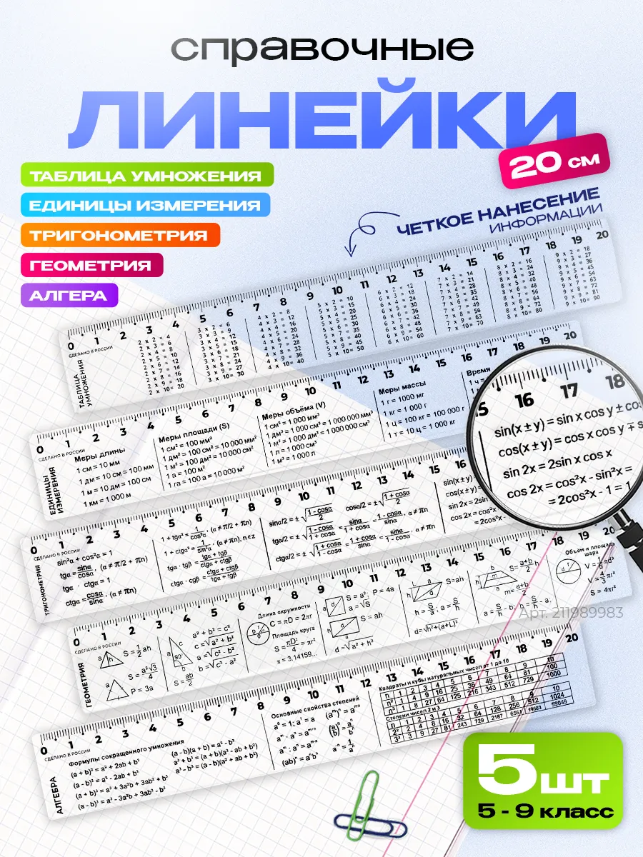 Широкая линейка-шпаргалка с таблицей умножения. Чёткое нанесение информации и шкалы делений 20 см. Безопасные закругленные углы. Гладкая глянцевая поверхность. Штрихкод на единице изделия. Прозрачная бесцветная. Материал: cертифицированный полистирол. [...]