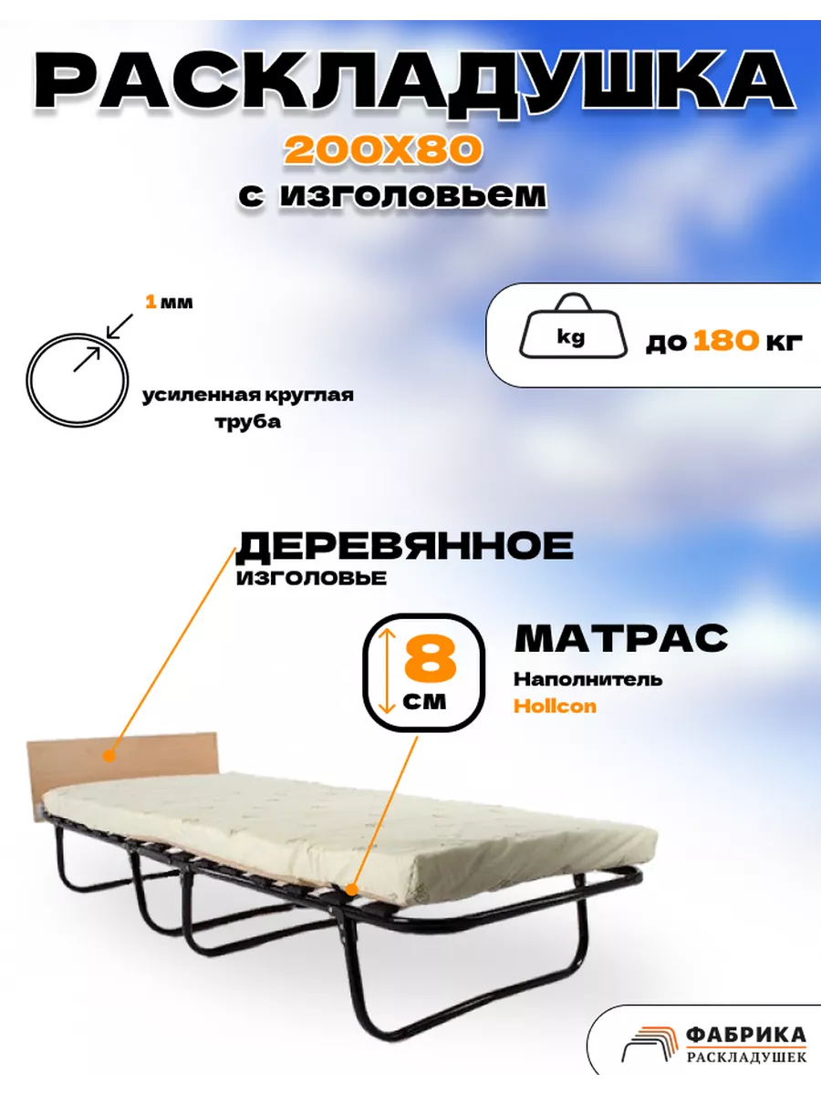 Складная односпальная раскладушка кровать с матрасом 2 см для сна всегда выручит во время отдыха, гостевой комнатный вариант временного размещения гостей, на ней комфортно спать дома и на даче, заменит походную кемпинговую раскладную мебель в туристическом походе, [...]