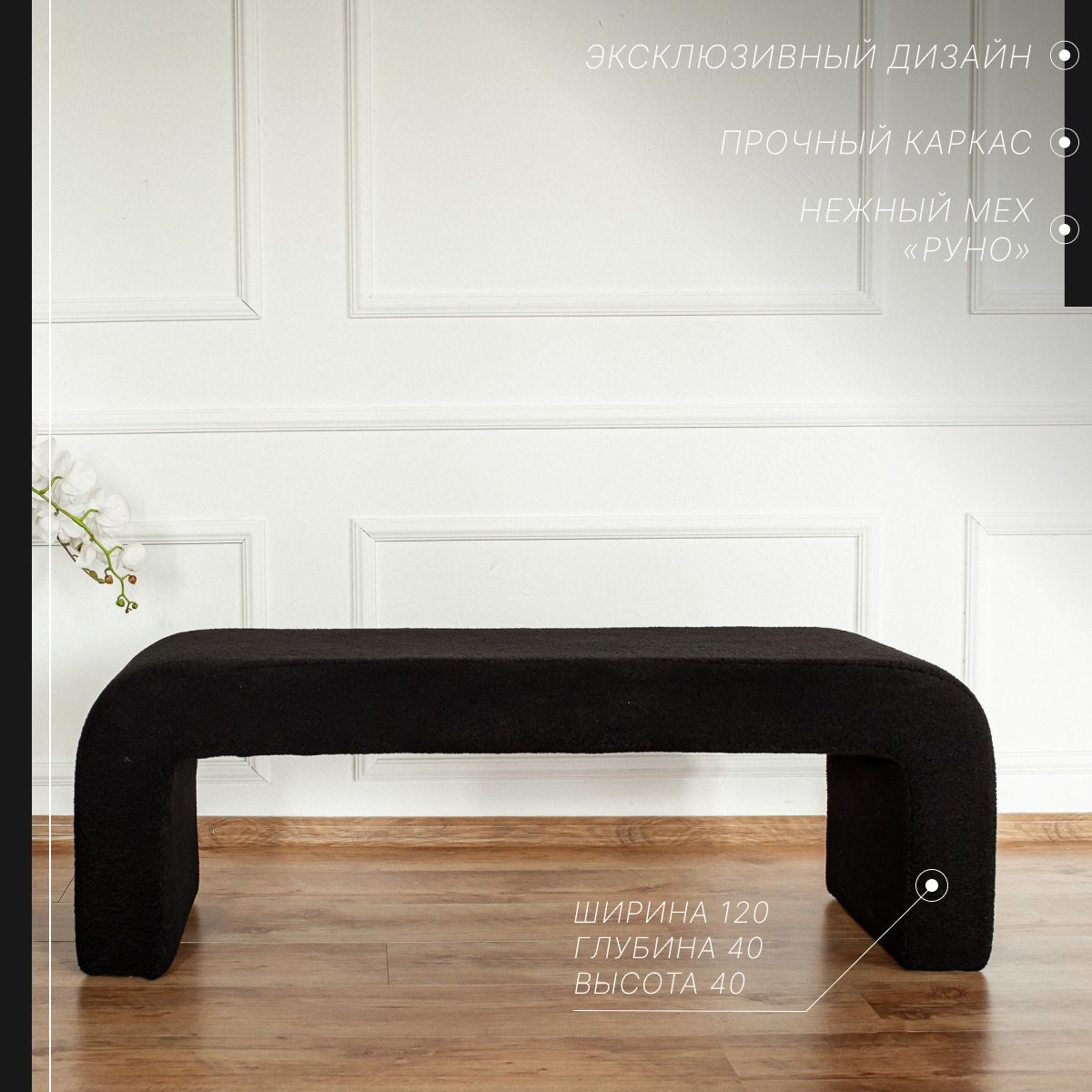 Дизайнерская мягкая банкетка пуф в прихожую, спальню и гостиную «Омега». Черный Оникс Банкетка пуф обшита тканью «Руно» (искусственный мeх). Цвет – Черный Оникс(расцветка черная) Искусственный мех «Руно» очень тактильный, шелковистый и манящий, так и хочется [...]