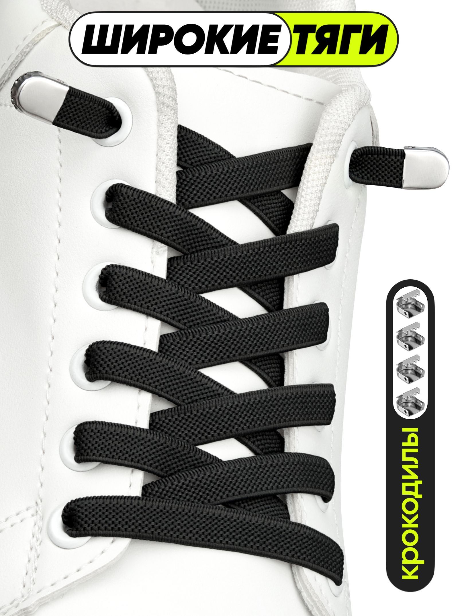 Тяги крокодилы с клипсами это широкие плоские шнурки резинки которые не нужно завязывать. Эластичные шнурки для обуви с фиксаторами тянущиеся и отлично подходят для кроссовок спортивной обуви кед туфлей данков конверсов берц. Ленивые самозавязывающиеся шнурки для [...]
