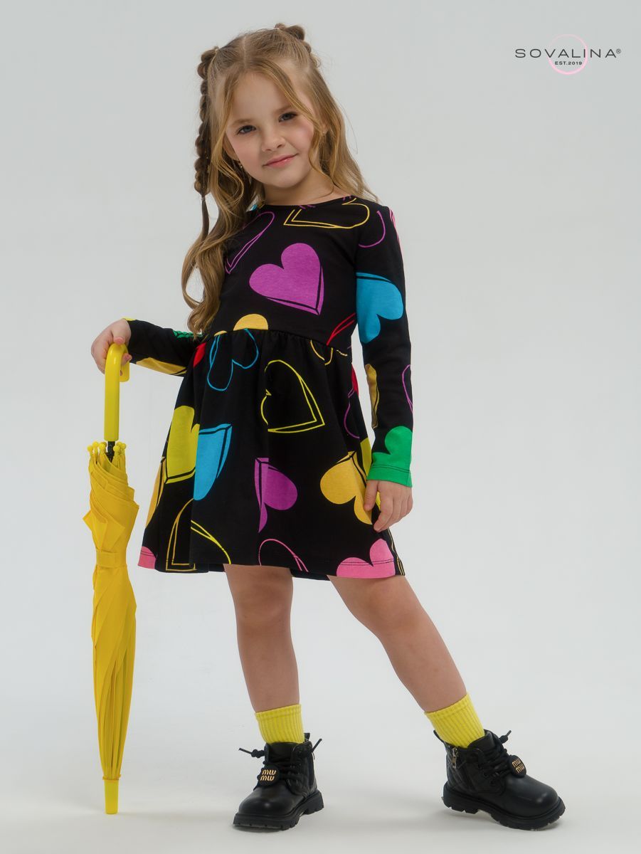 Платье для девочки, идеально подходящее для повседневных занятий в садике или дома. Платье с длинным рукавом обеспечивает комфорт и свободу движений. Изготовлено из натурального хлопка, которое позволяет коже дышать и не вызывает аллергических реакций. Яркая расцветка [...]
