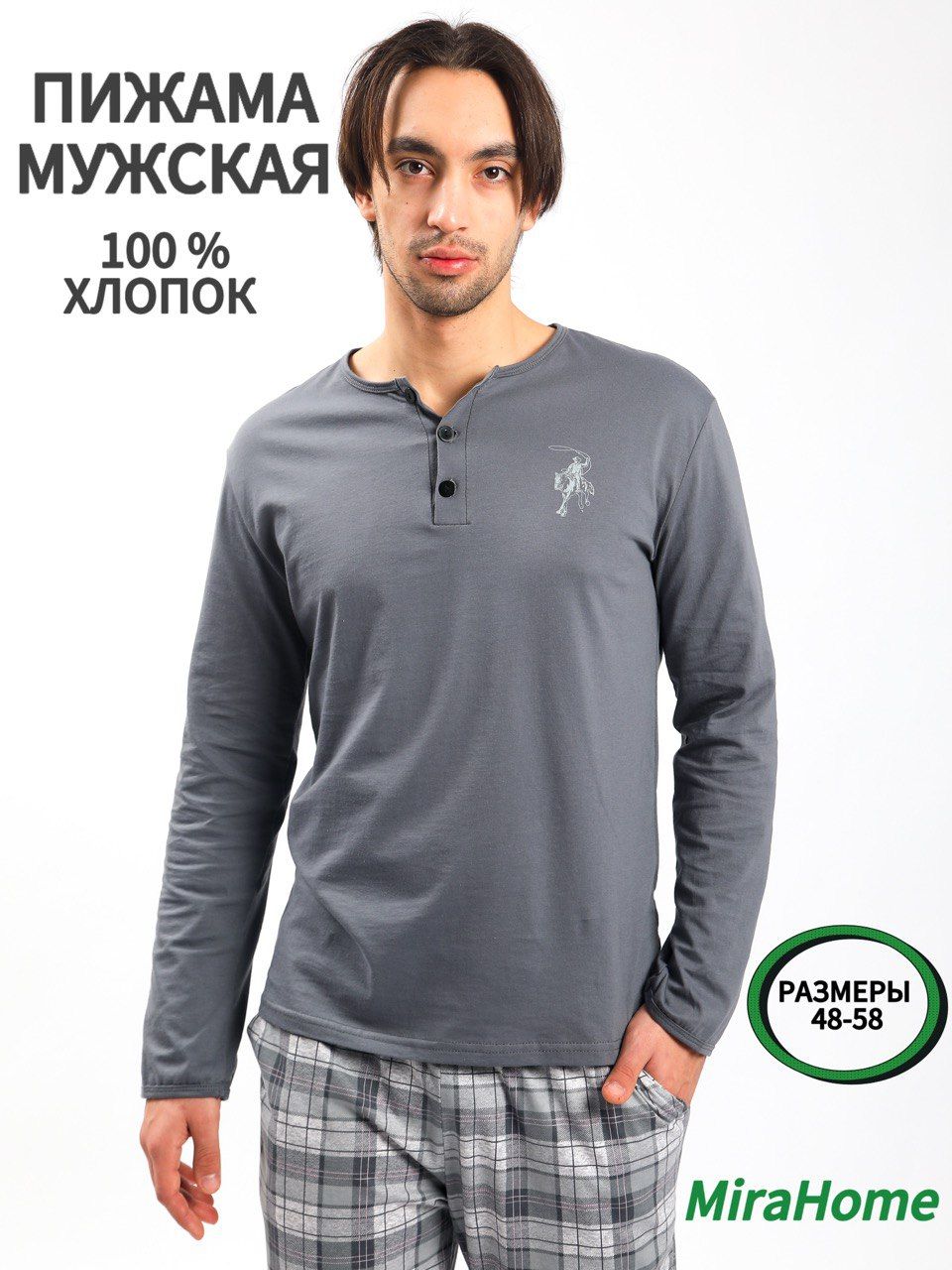 Мужская пижама с брюками и рубашкой в клетку, темно-серого цвета. Клетчатая мужская пижама изготовлена из натурального хлопка с небольшим добавлением полиэстера для большей прочности, а это значит, что костюм домашний: мягкий, дышащий, гипоаллергенный, не электризуется, [...]