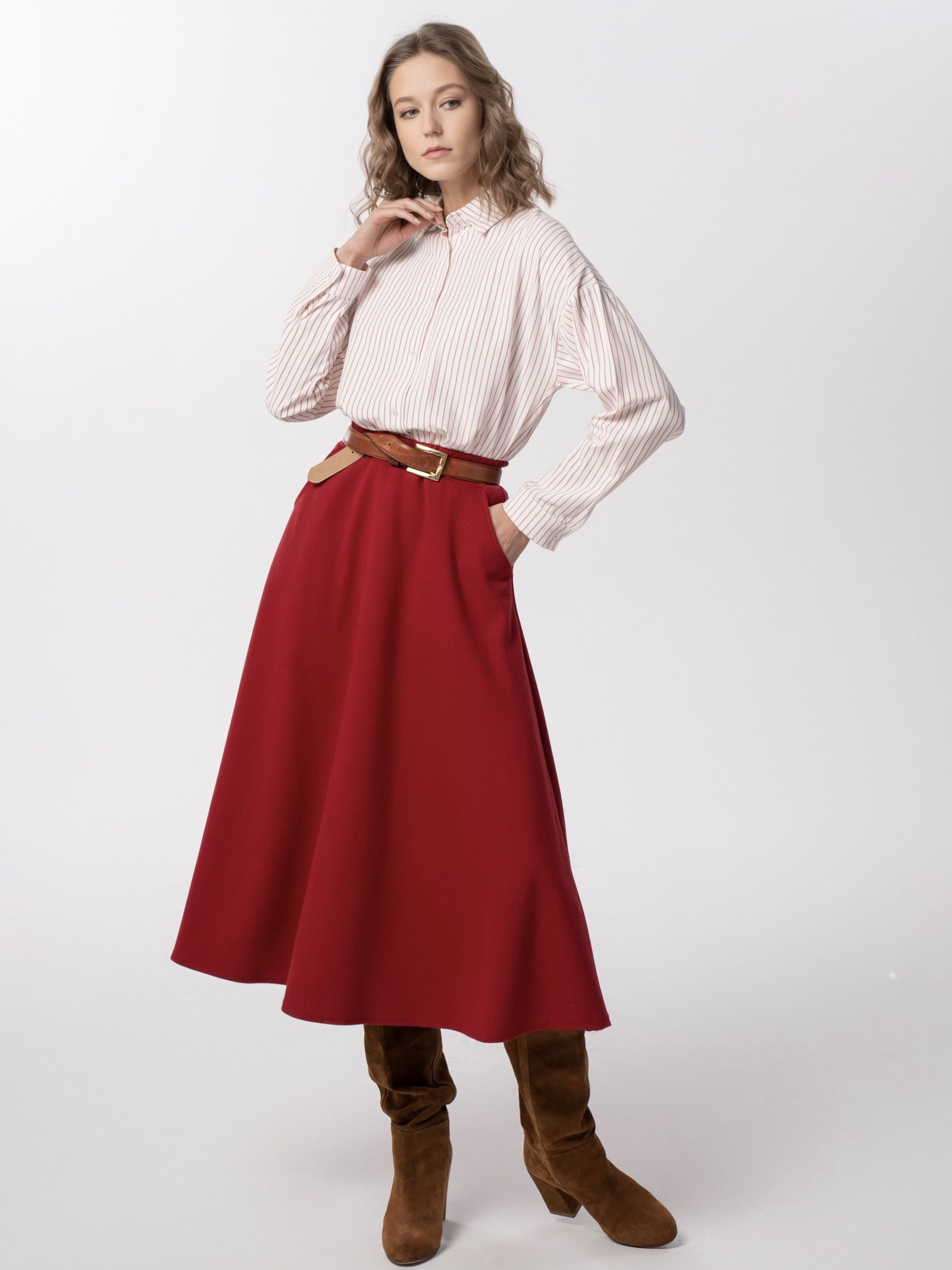 Красная юбка, терракот, кирпичная женская. Она зимняя или осенняя и весенняя. Теплая и плотная наша длинная классическая миди трикотажная. Солнце на резинке больших размеров. Юбка яркая женская длинная на резинке. Клеш а силуэт полусолнце. Расклешенная ниже колен [...]