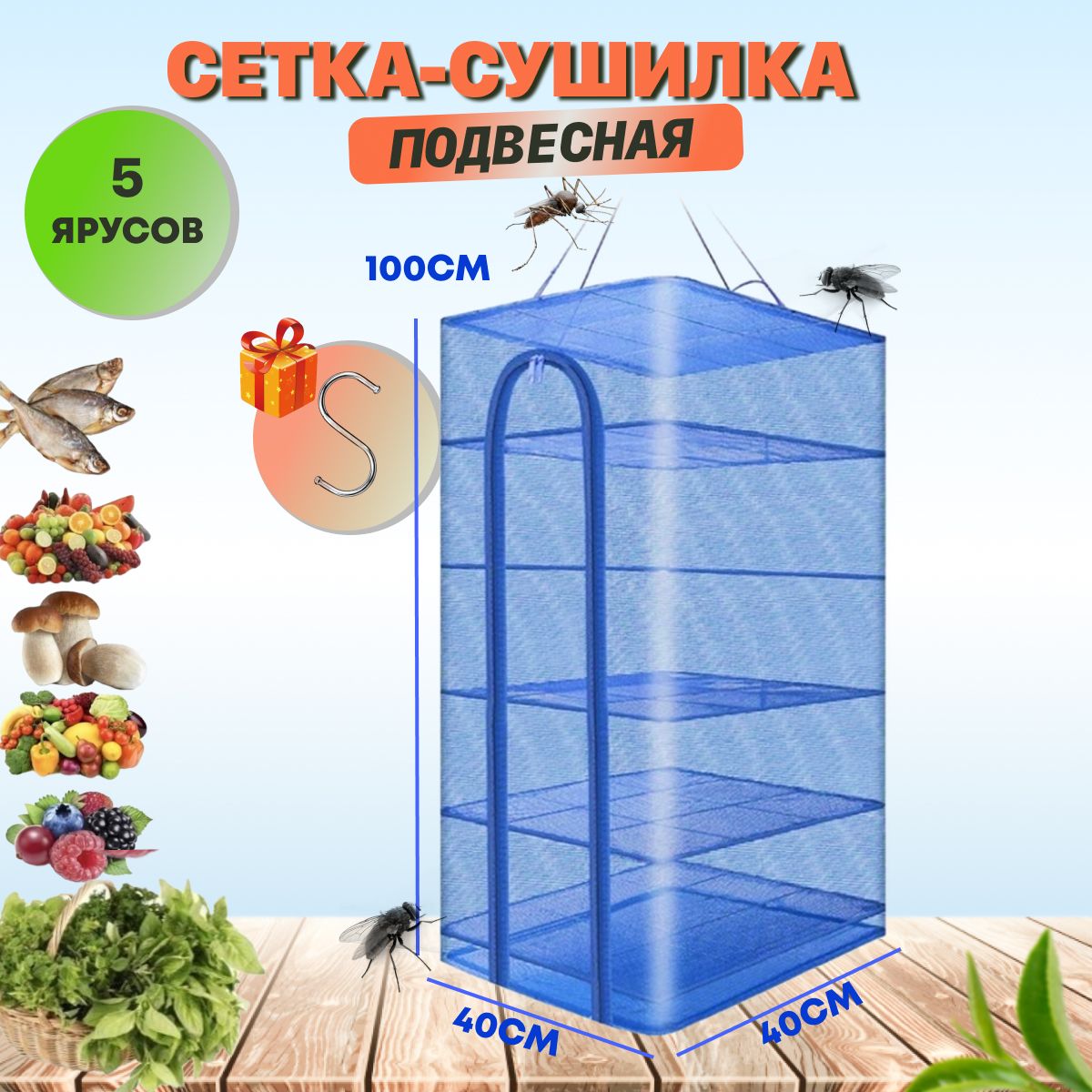 ПОДВЕСНАЯ СЕТКА СУШИЛКА 40х40х100 см, 5 ЯРУСОВ + КРЮЧОК В ПОДАРОК! Сушилка походная, сушилка для рыбы, сетка сушилка подвесная предназначена для безопасной и качественной сушки рыбы, грибов, фруктов, овощей, трав и орехов.Сушилка удобно открывается благодаря застежке на [...]