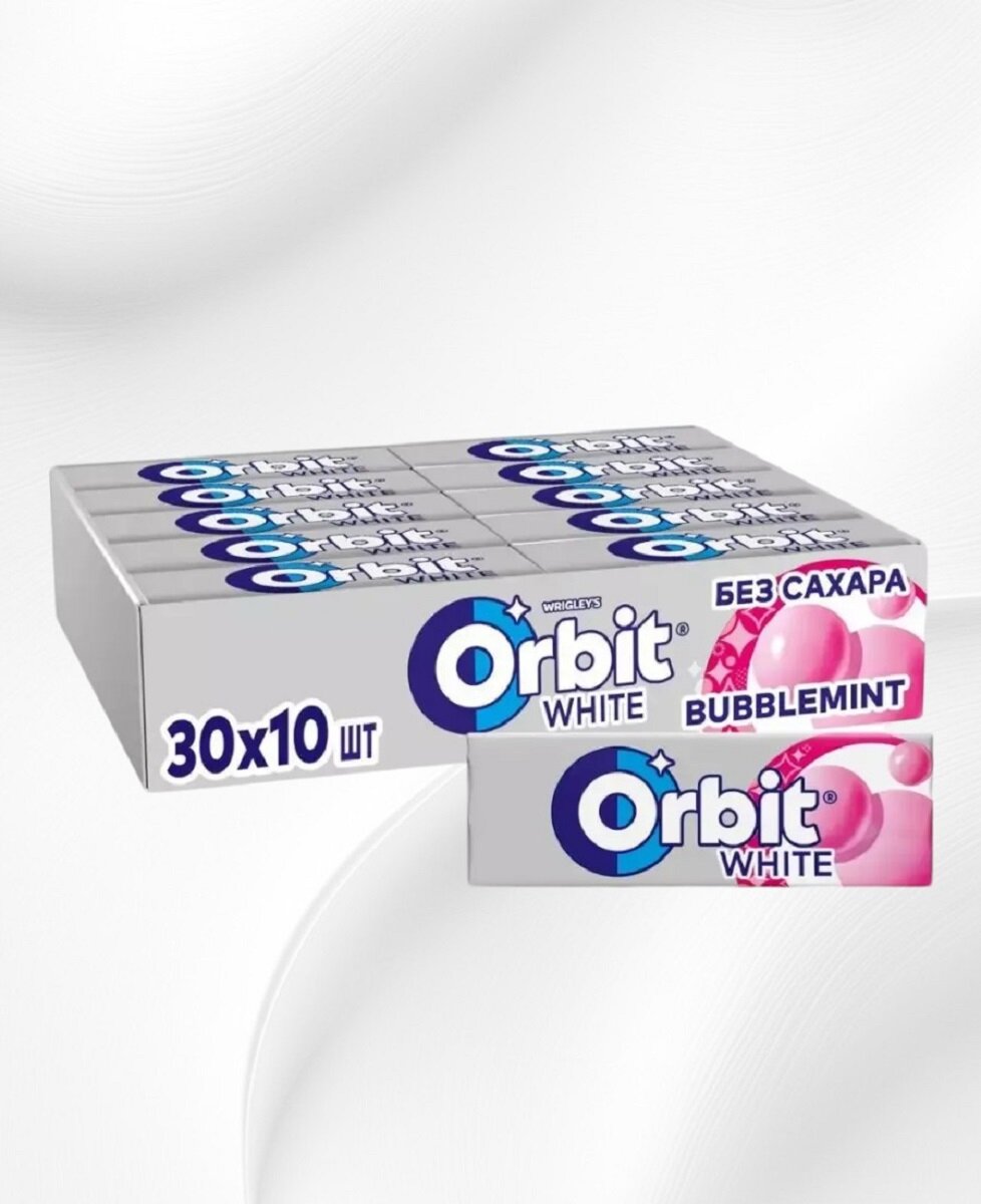 Orbit White Bubblemint — жевательная резинка без сахара с ярким вкусом.<br />Жевательная резинка помогает заботиться о зубах: удаляет остатки пищи, способствует уменьшению зубного налета, нейтрализует вредные кислоты и усиливает процесс реминерализации эмали.<div>- Orbit White Bubblemint [...]