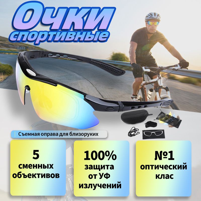 Очки солнцезащитные со сменными линзами / Для велосипедистов и мотоциклистов, антибликовые очки, 5 линз Особенности: защита от ультрафиолетовых лучей, защита от синего света, защита от песка и ветра, снижение зрительной усталости, фильтрация,Модель 868 солнцезащитных очков [...]
