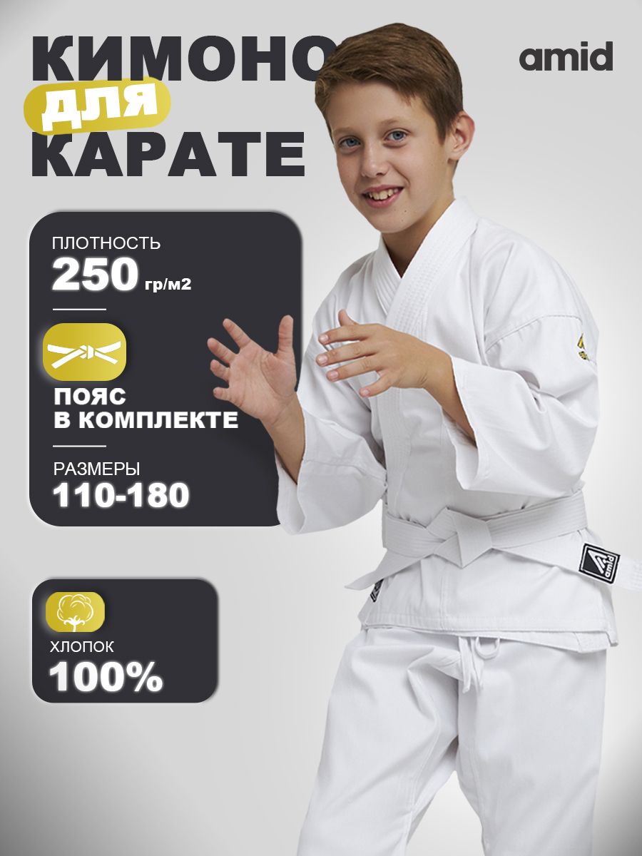 Комплект кимоно для карате для мальчика или девочки состоит из: куртка кимоно, штаны и пояс карате под цвет кимоно. Куртка имеет двойные швы и боковые разрезы для удобства движений. Белый пояс кимоно оби удобный и прочный из хлопковой ткани шириной 4см. Кимоно для каратэ [...]