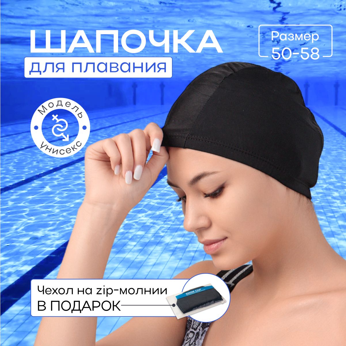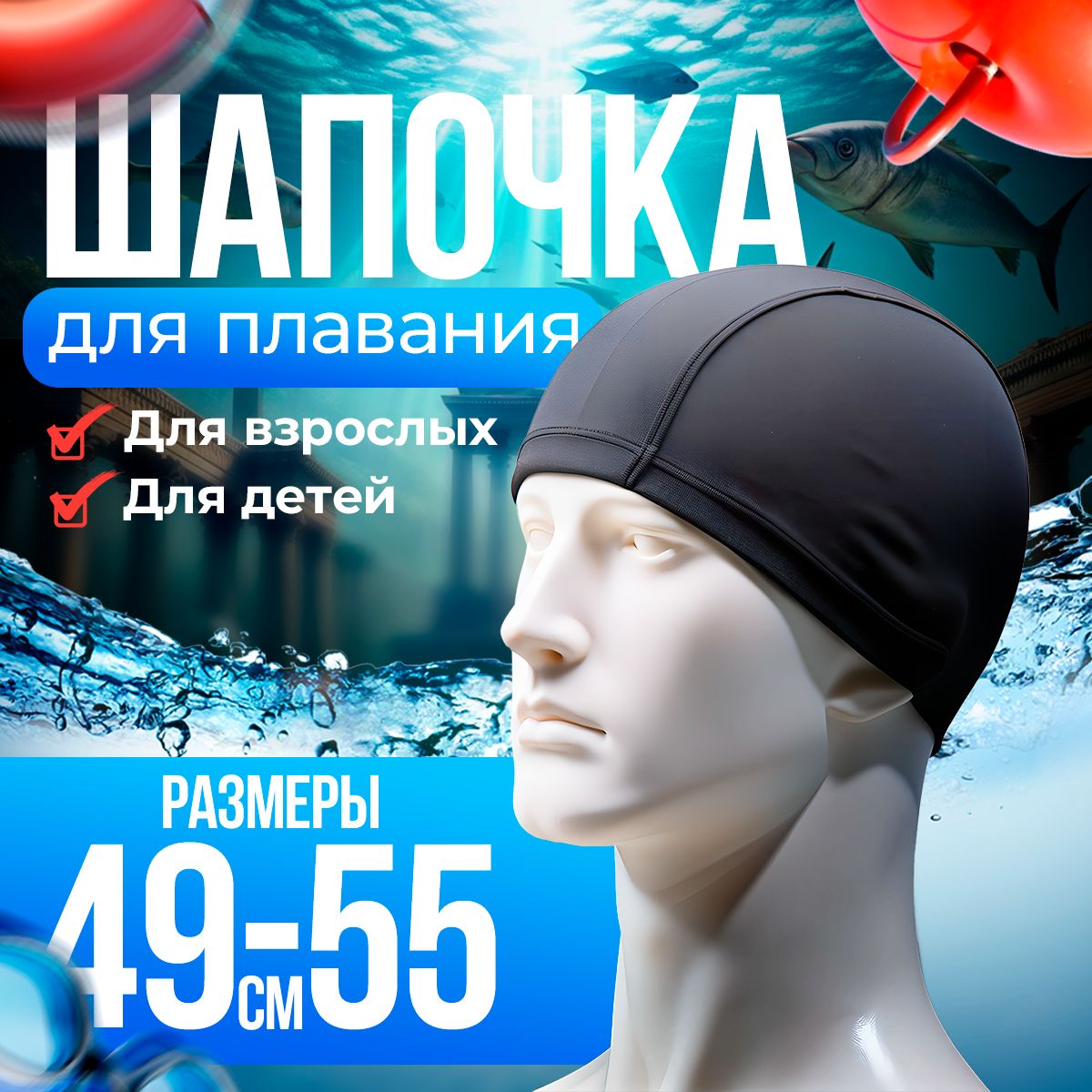 Обратите внимание, что шапочка тканевая пропускает воду.Шапочка для бассейна черная, универсального размера от 49 до 55 см обхвата, идеальна для всех возрастов и полов. Если вам нужна надежная защита волос во время плавания, то наш продукт подойдет как женщинам, так и [...]