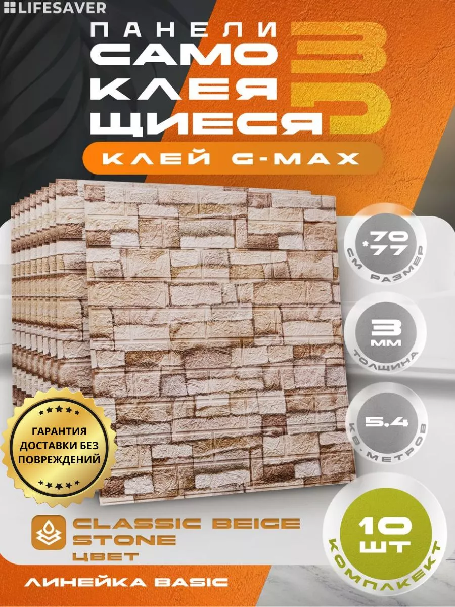 Самоклеящиеся панели для стен 3д мягкие "Эллинский Кирпич" 70х77 см. под кирпич в ванную, для потолка, на кухню