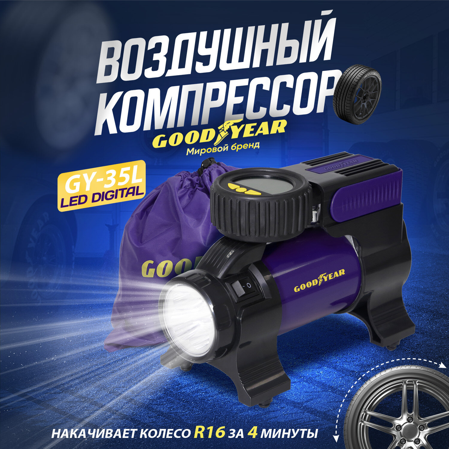 Цифровой автомобильный компрессор Goodyear GY-35L LED DIGITAL — незаменимый помощник в дороге для любого водителя. Устройство предназначено для накачивания автомобильных и велосипедных шин, резиновых лодок, матрасов и мячей. В комплект входит набор переходников.<br [...]