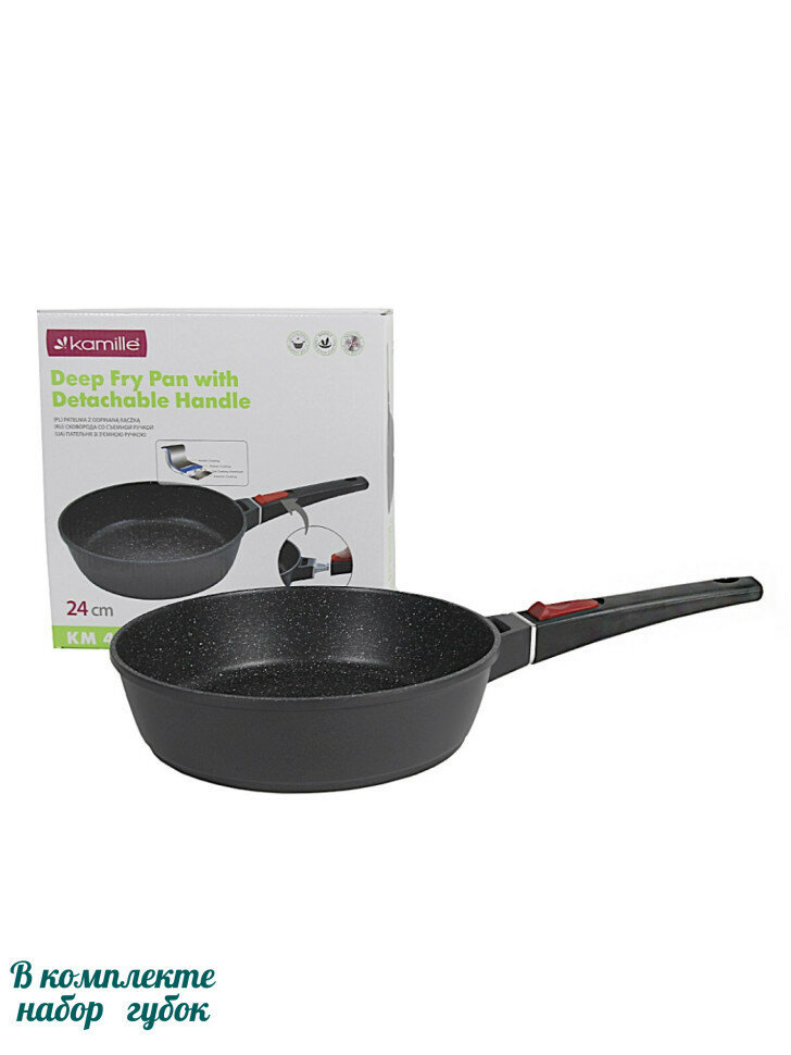 <div>Классическая глубокая сковорода (сотейник) Kamille станет незаменимой помощницей на вашей кухне, она идеально подойдет для жарки, для тушения на всех типах плит включая индукционные, а благодаря съемной ручке еще и для готовки в духовом шкафу.</div><div>Сковорода изготовлена [...]