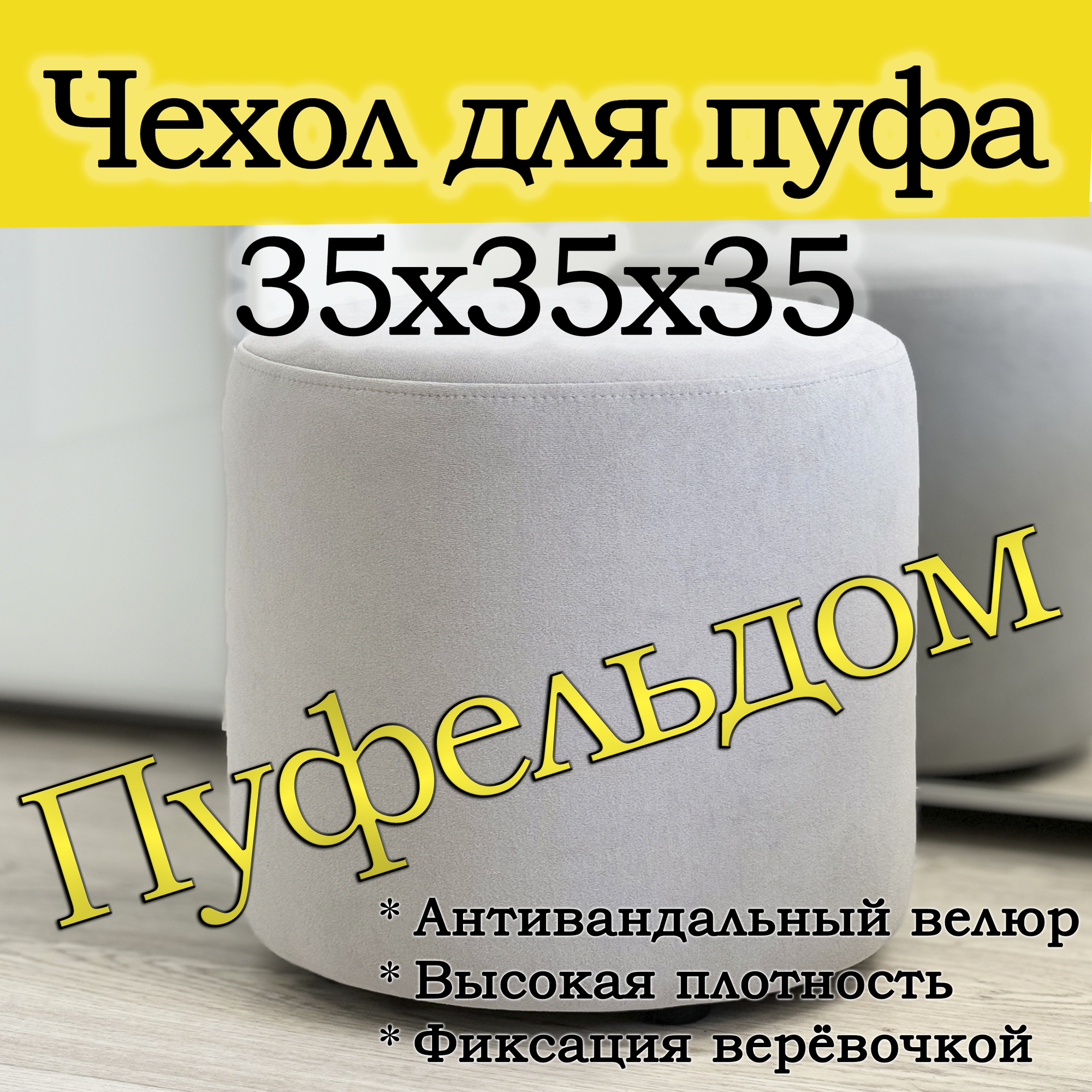 Практичный антивандальный чехол для пуфика из велюра. Изделие легко надевается и снимается для стирки. Снизу фиксируется очень крепкой верёвочкой. Максимальный диаметр основы пуфа 35 см, высота без учёта ножек 35 см. Наши чехлы изготовлены из плотных антивандальных [...]