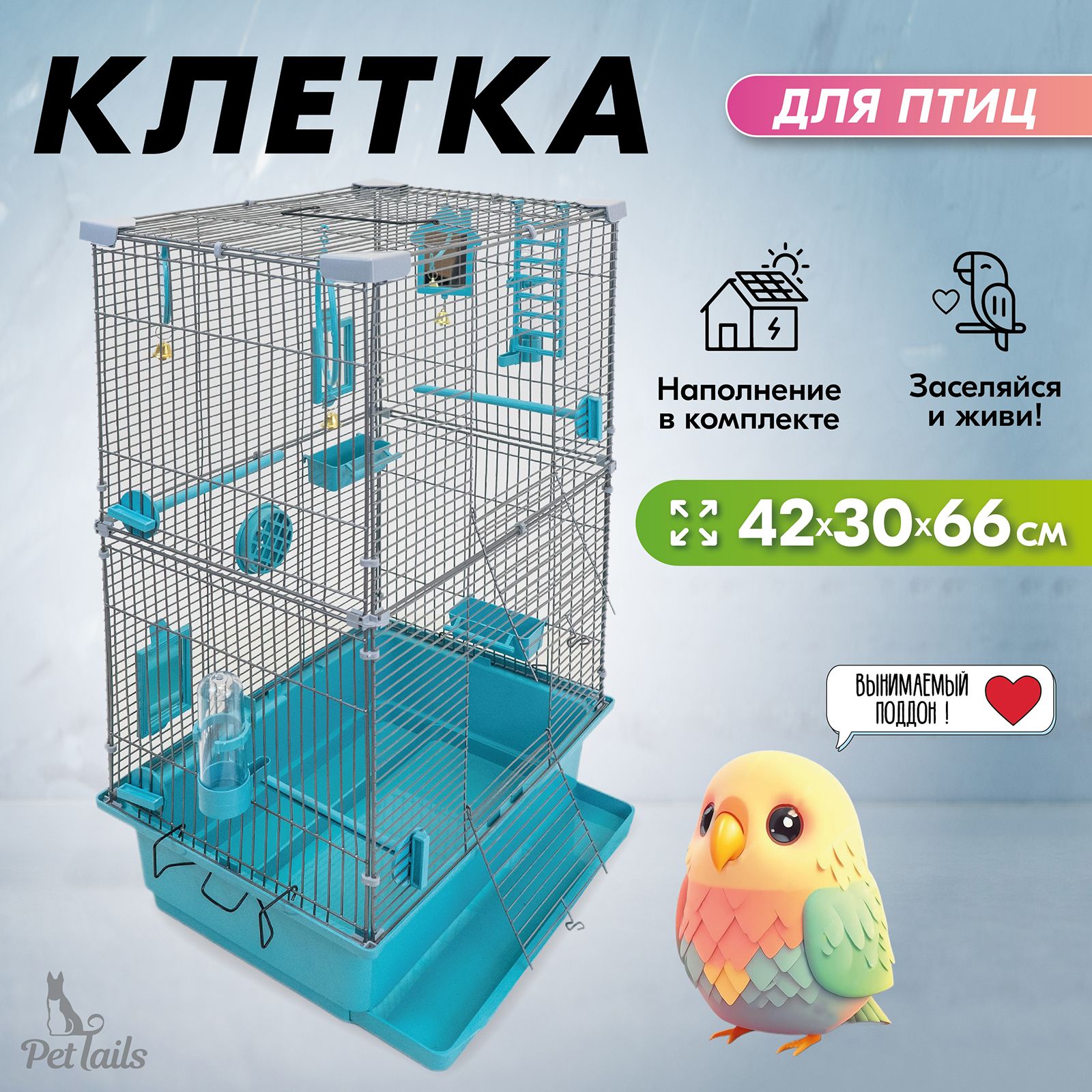 Клетка серии ЛОФТ для попугаев, птиц металлическая на пластиковом поддоне. Разборная конструкция: 4 стенки и крыша. Дверца расположена в передней (длинной) стенке и в боковой (короткой). Прутья на длинных стенках расположены горизонтально, на коротких - вертикально. [...]