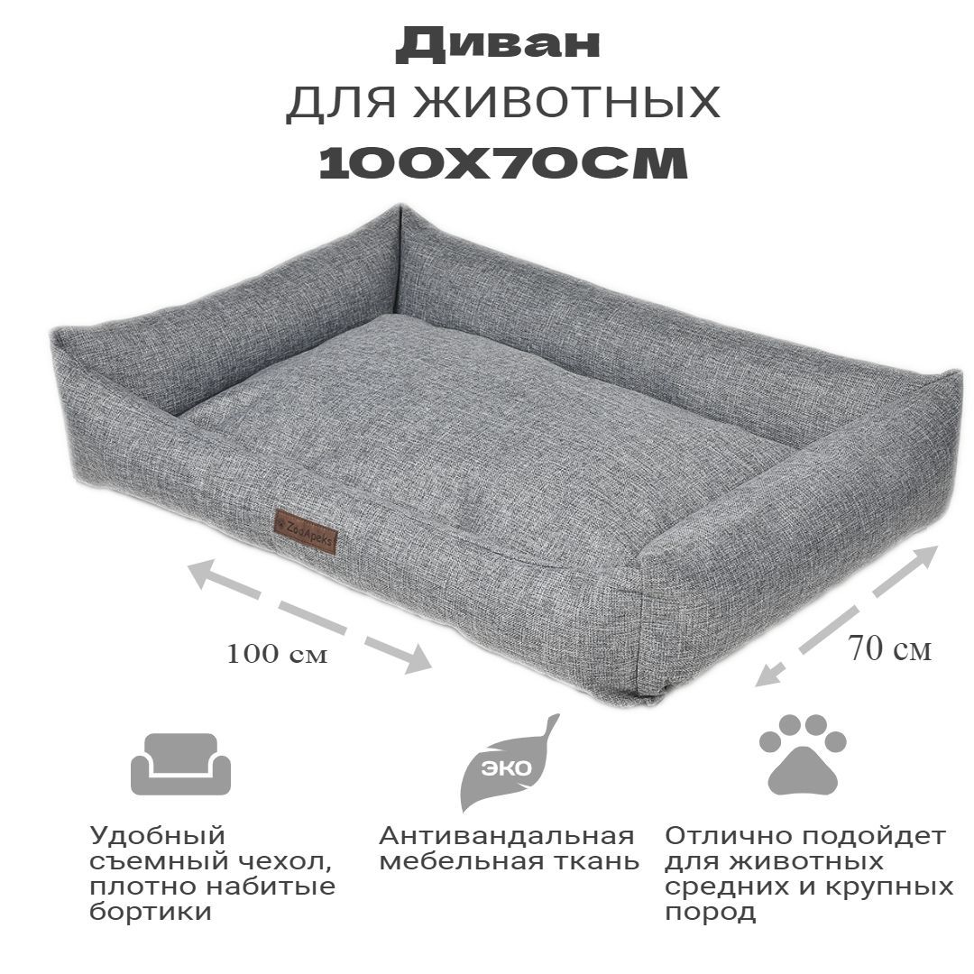 Лежанка анатомическая для собак SunBed прямоугольная со съемным чехлом из прочной мебельной ткани, серый меланж, 120х90 см.Огромная большая лежанка для собак со съемным чехлом на бортиках и подушке – отличное решение для отведения отдельного спального места питомцев. [...]