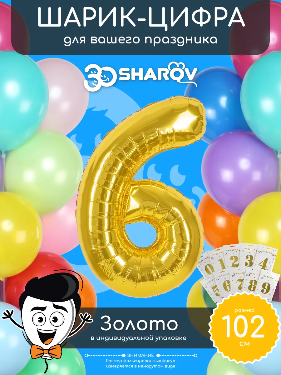 Фольгированный воздушный шар с гелием Цифра 6 Золото -... [...]