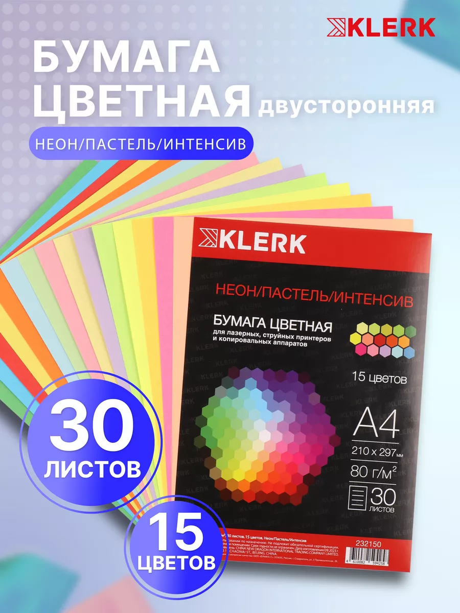 Бумага цветная для принтера А4 торговой марки KLERK 250... [...]