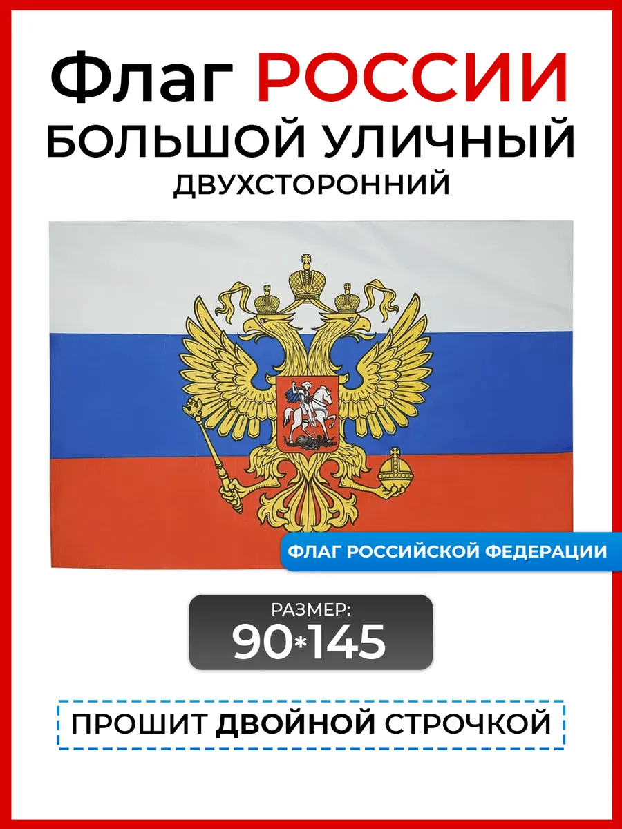 Большой флаг России с Гербом, 90 х 140см Триколор РФ с... [...]