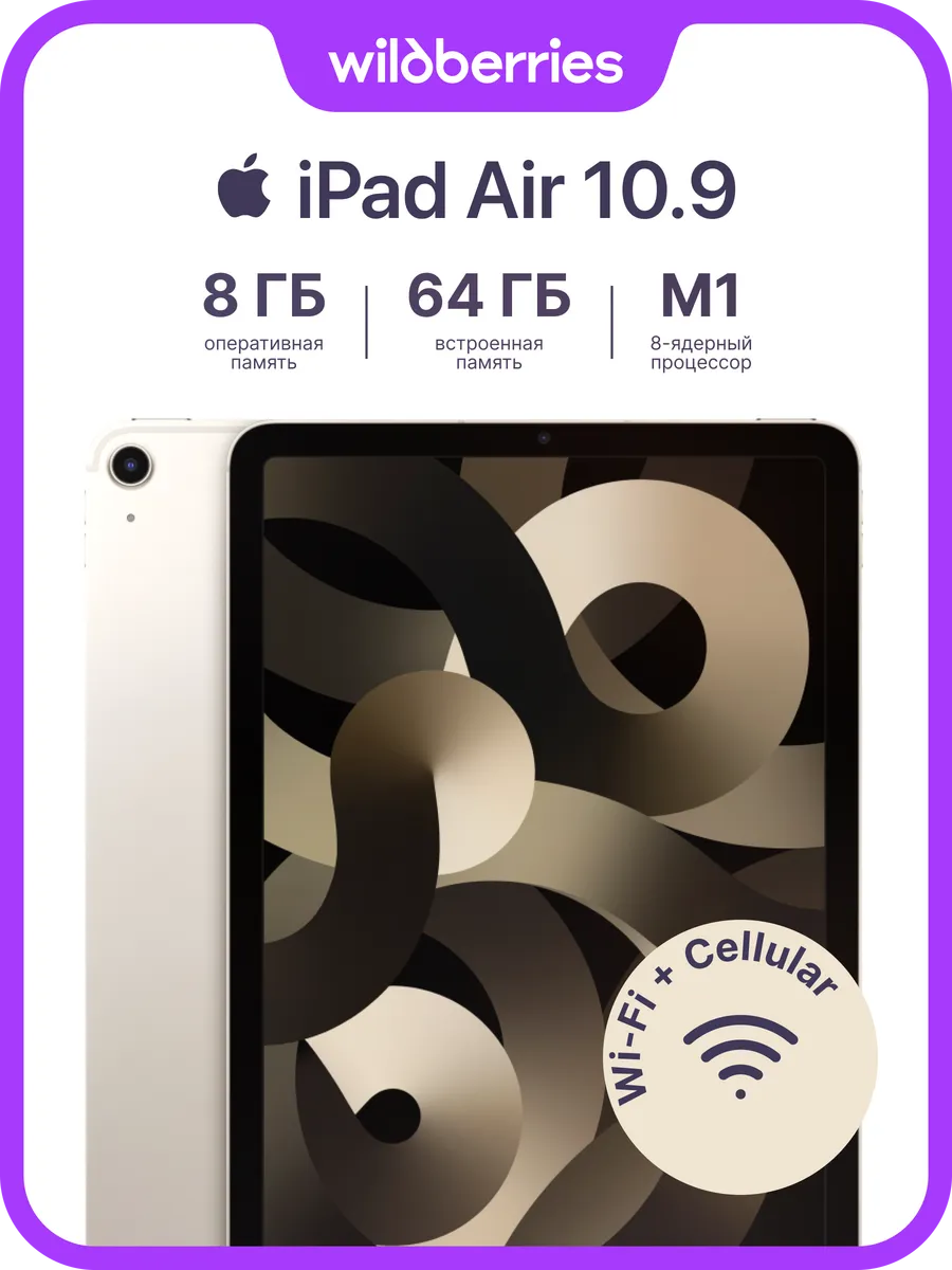 Планшет Apple iPad Air 2022 64GB Wi-Fi + Cellular Purple (MME93) - это... [...]