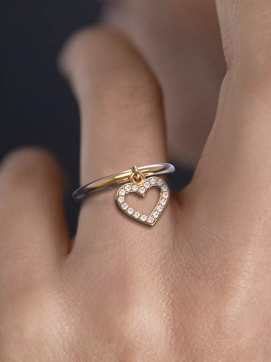 Ювелирное кольцо с подвеской в виде сердца с камнями.... [...]