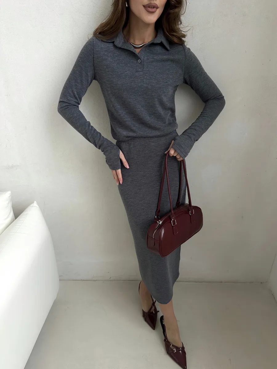 Этот стильный трикотажный костюм с юбкой идеально... [...]