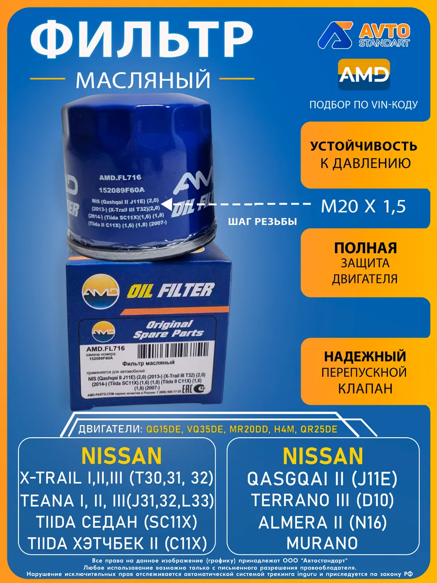 Автомобильный масляный фильтр АMDFL716 представляет... [...]