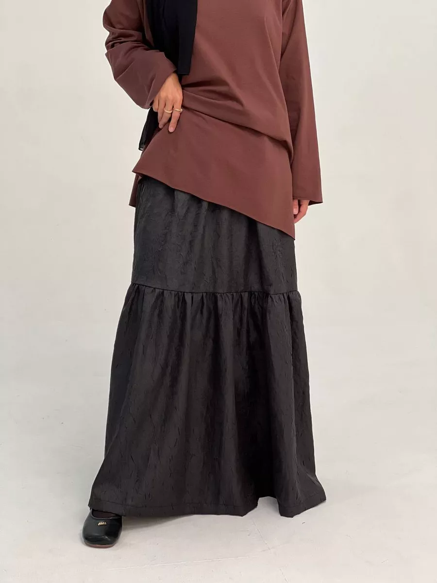 Атласная черная юбка макси на резинке подчеркивает... [...]